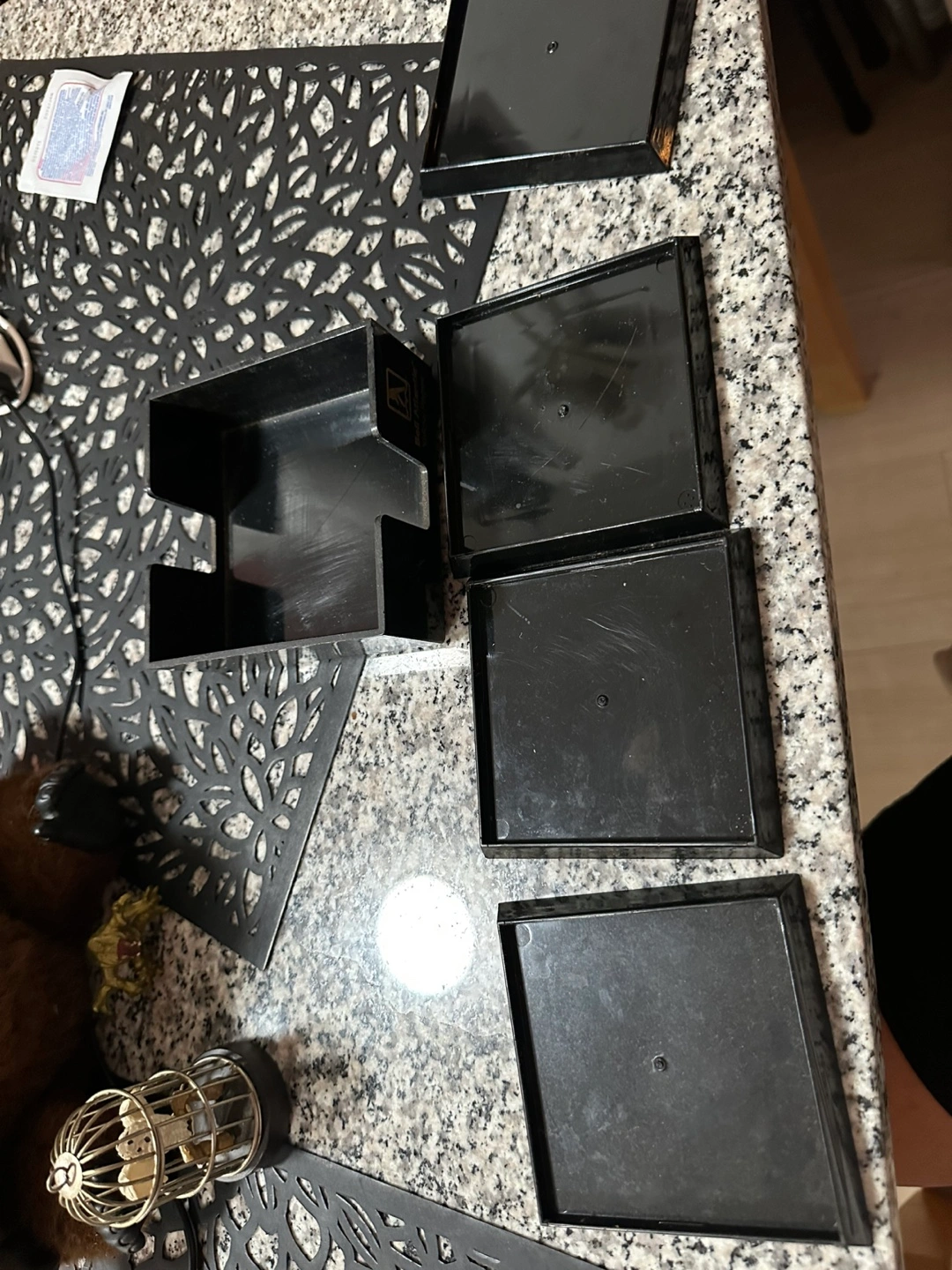 Four Coasters are 3.75" x 3.75" and Holder is 4" Square and 1.5 thank you we can meet for pick up Bronx