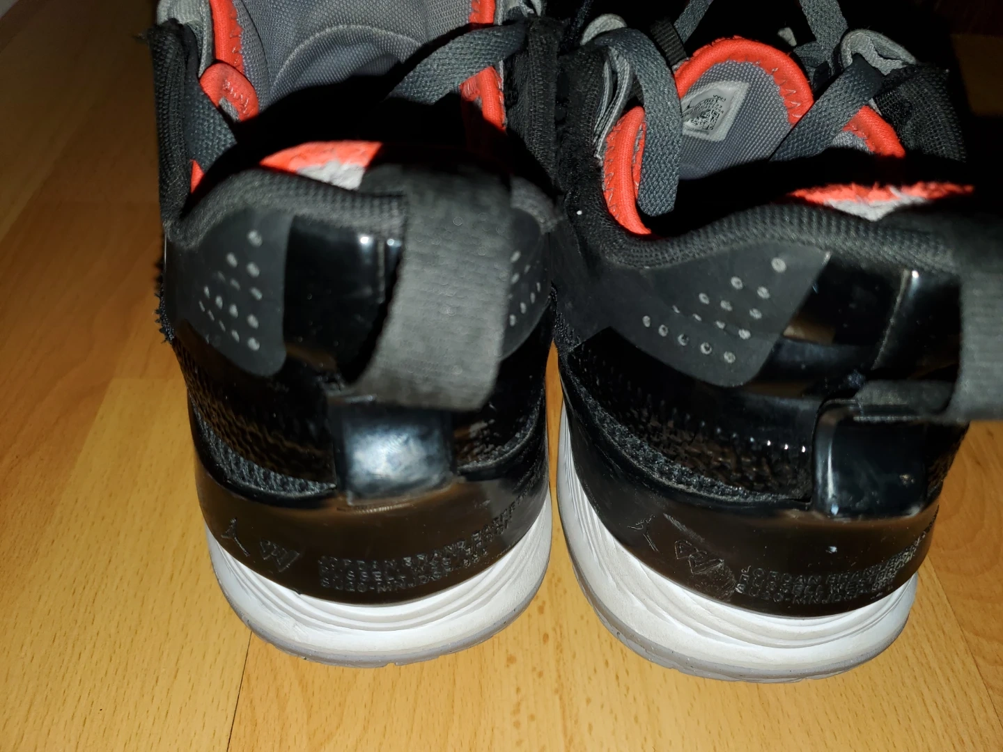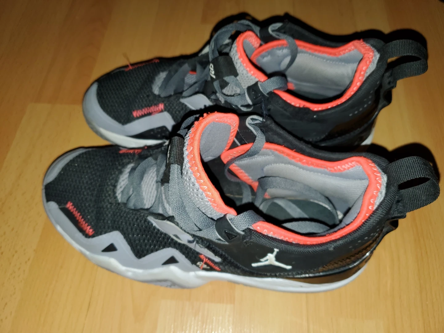 These are Nike Men's Jordan Russell Westbrook One Take II basketball shoes. Features a black, grey, and orange colourway.
