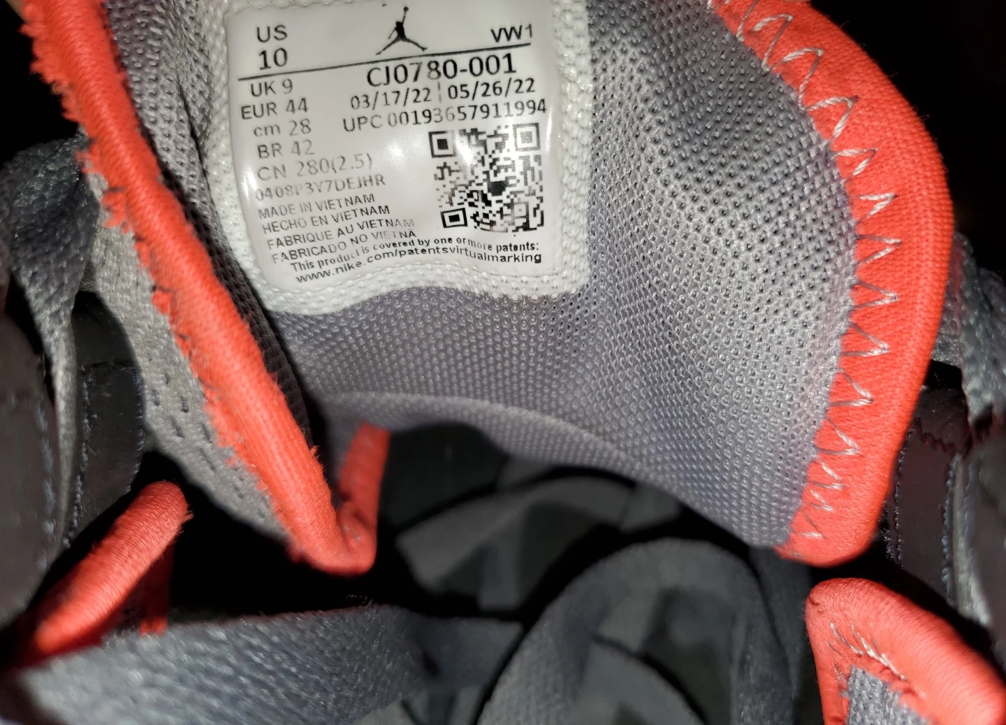 Made in Vietnam. These shoes were manufactured on March 17, 2022.