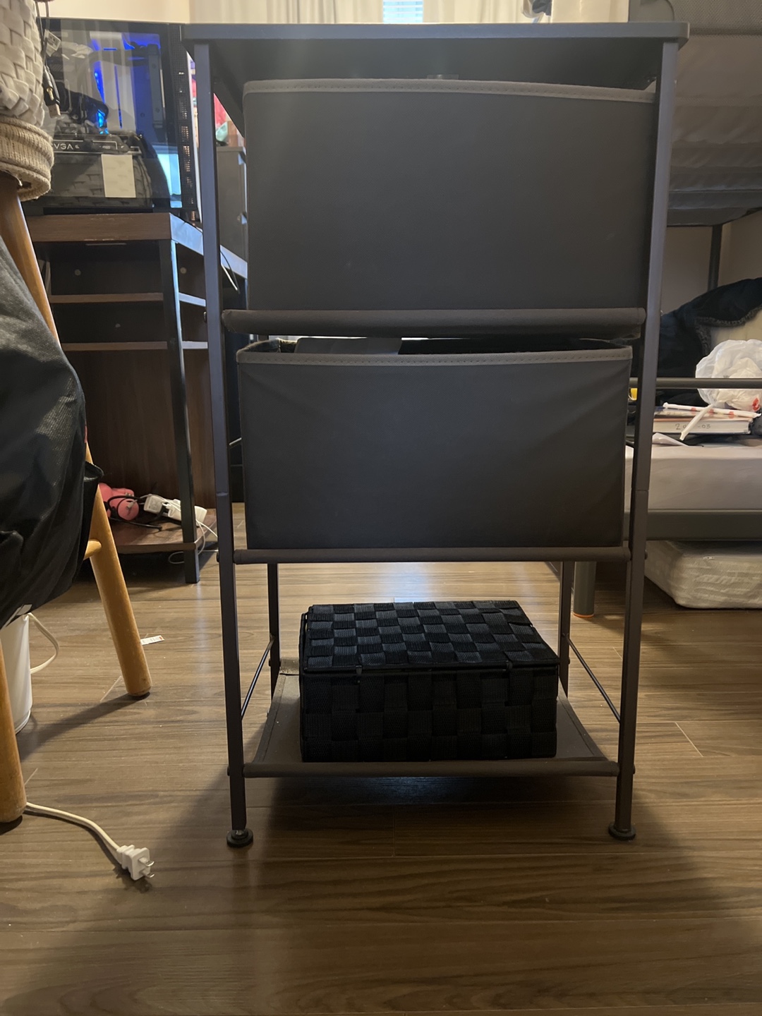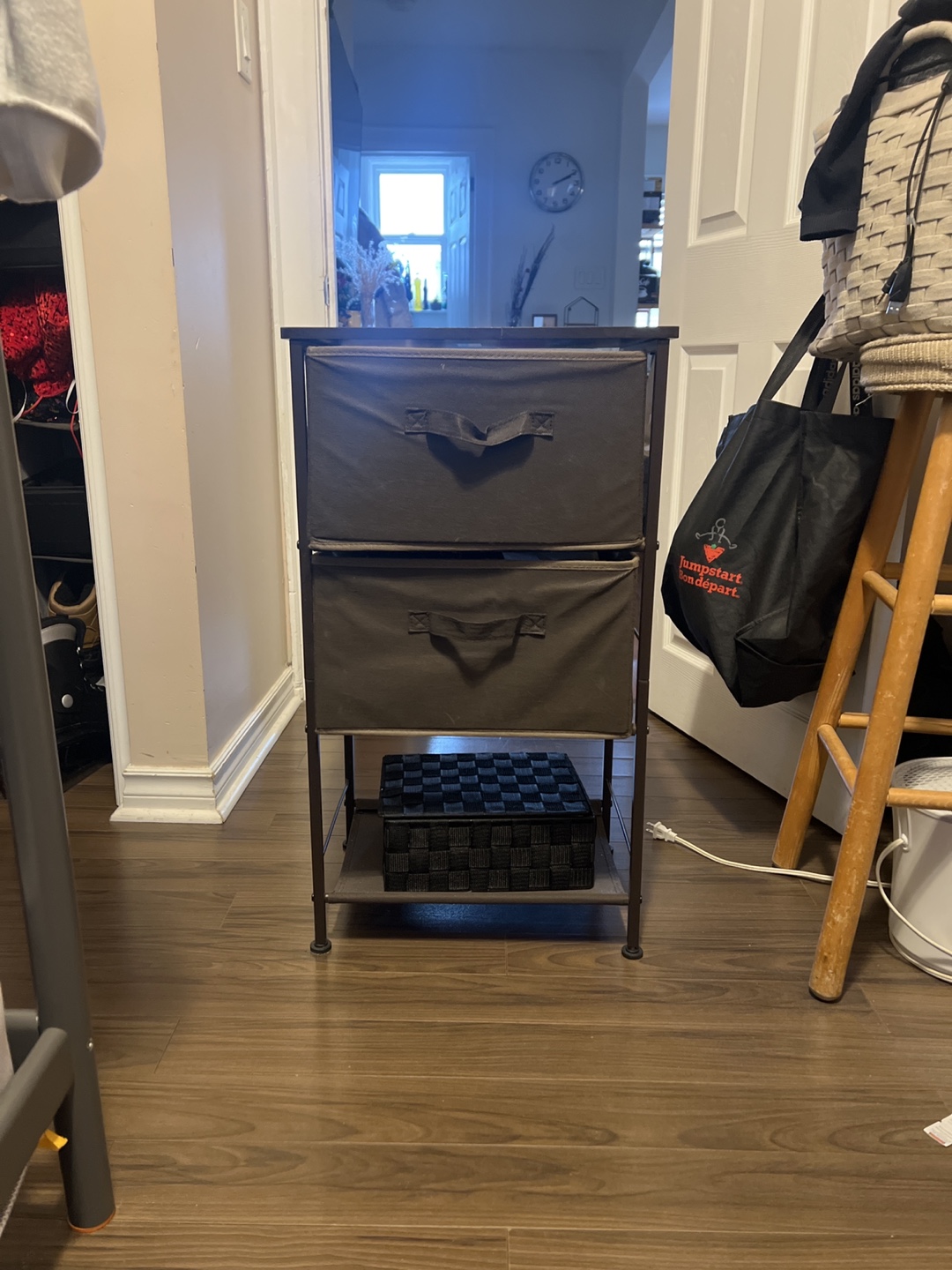 1 / 31 / 3Buy & SellMetal Storage Organizer with DrawersMetal Storage Organizer with Drawers$15Metal storage organizer with 2 fabric drawers and a bottom shelf. Includes a small black fabric box for the shelf.WHERE TO MEETHomeView MapSELLERRyanDavenport17317 reviews3 chats·0 favorites·59 viewsSEND CHAT TO SELLERHi Ryan! I’m interested in your listing.Hi Ryan! I’m interested in your listing.Get the Karrot app to chatSign In to chat