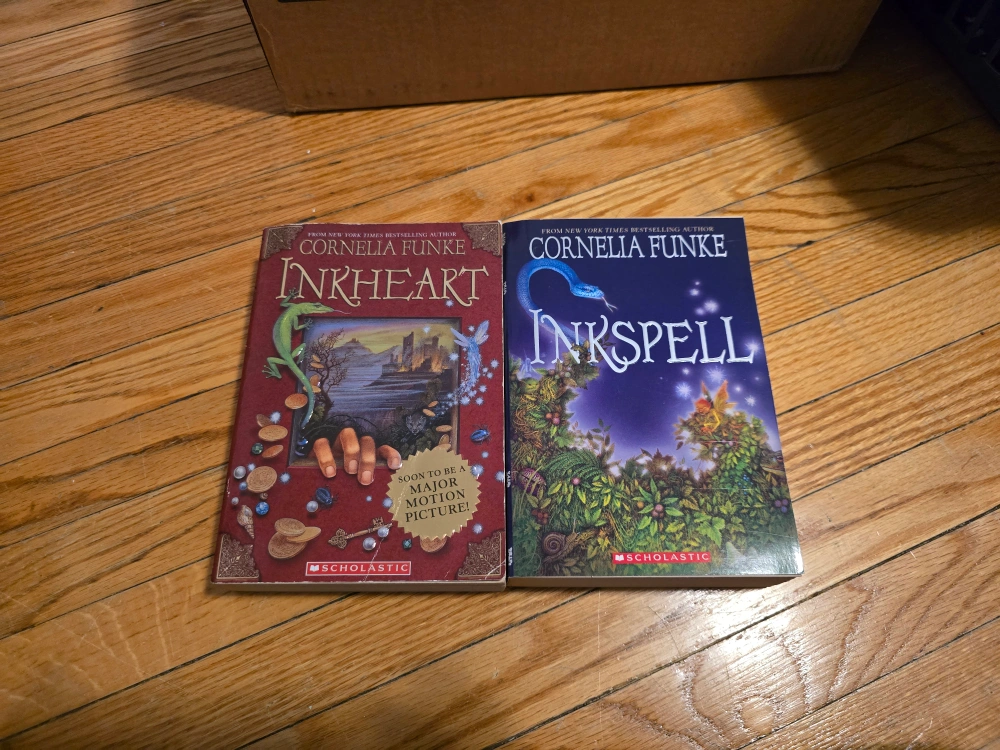 Two books by Cornelia Funke, Inkheart and Inkspell. Both books are in good condition and feature a Scholastic cover. $4 each or $6 for both.
