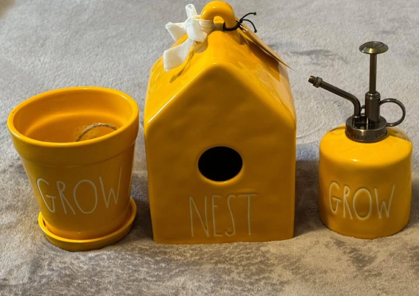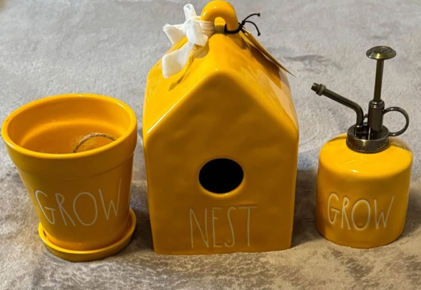 Rae Dunn Bundle Nest Birdhouse, Grow Planter & Grow Mister