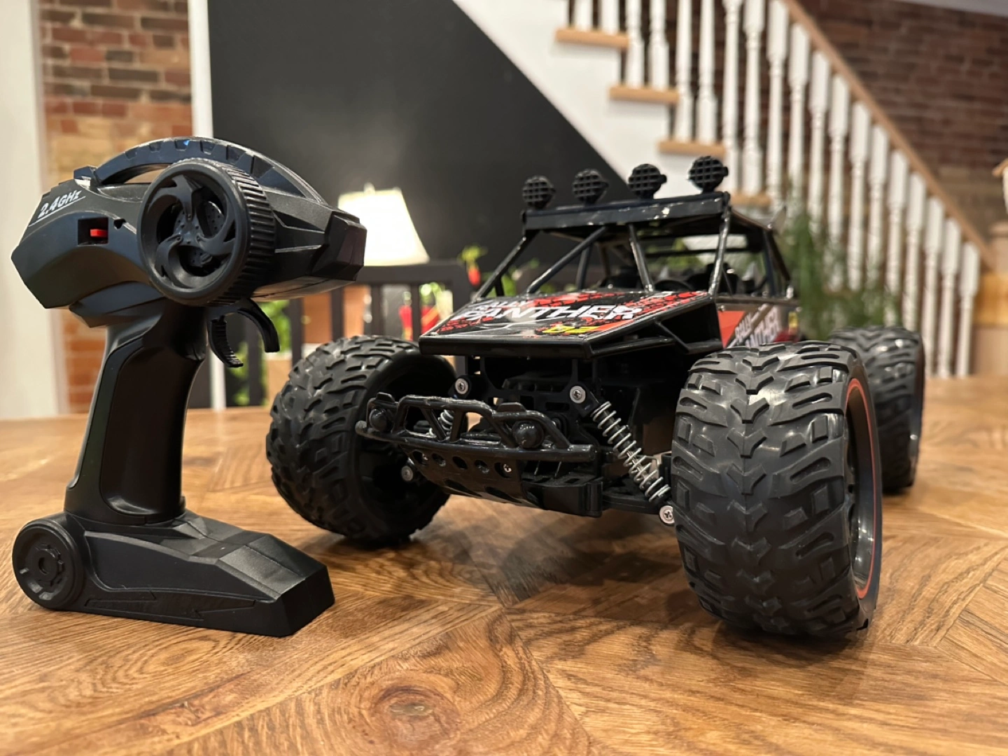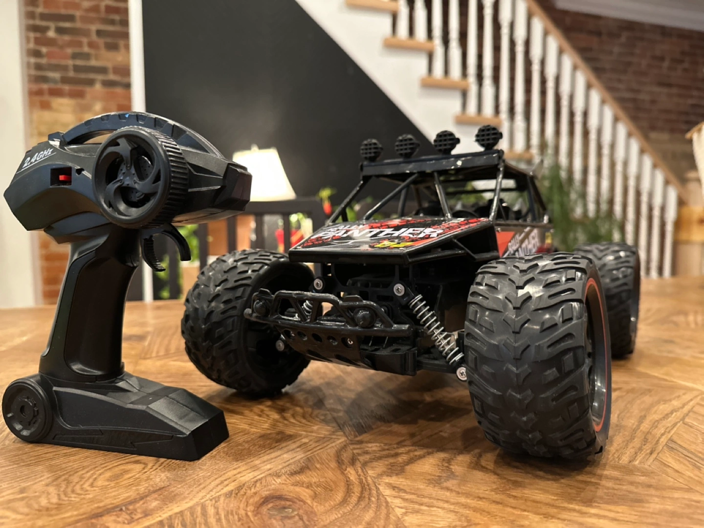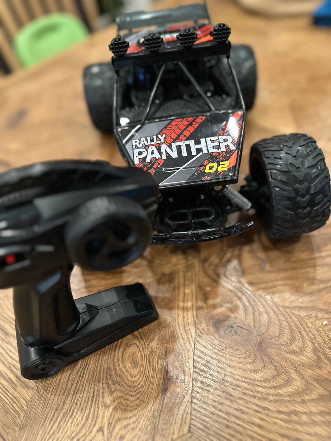 Remote control monster truck. Includes truck and remote. Black with red and grey accents. New.