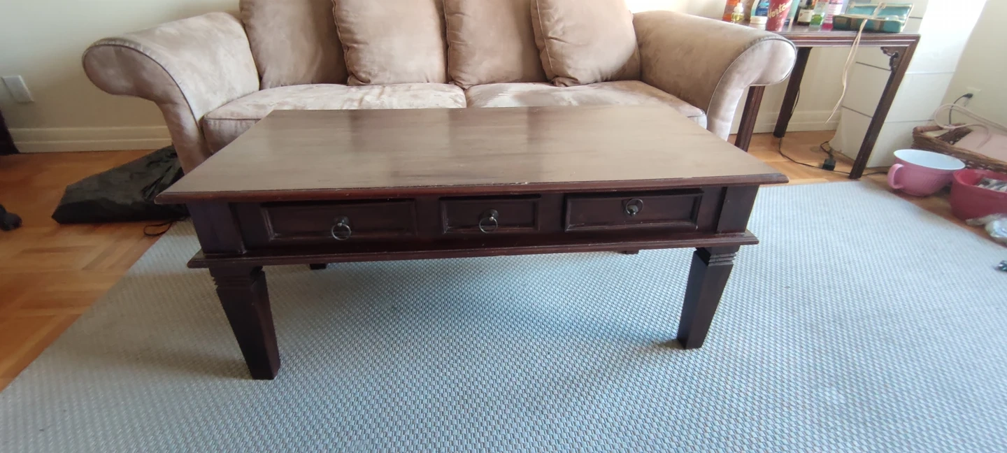Leaving the country in a few days. MUST BE PICKED UP ASAP!!! Indonesian style wooden coffee table with 3 small drawers. Pretty good condition, but well loved. :) Happy for someone to make use of this and for it not to end up in a landfill. Available for *PICK UP ONLY* at Mt. Pleasant and Eglinton. From a pet free and smoke free home. Thanks! ππΏππΎππ½