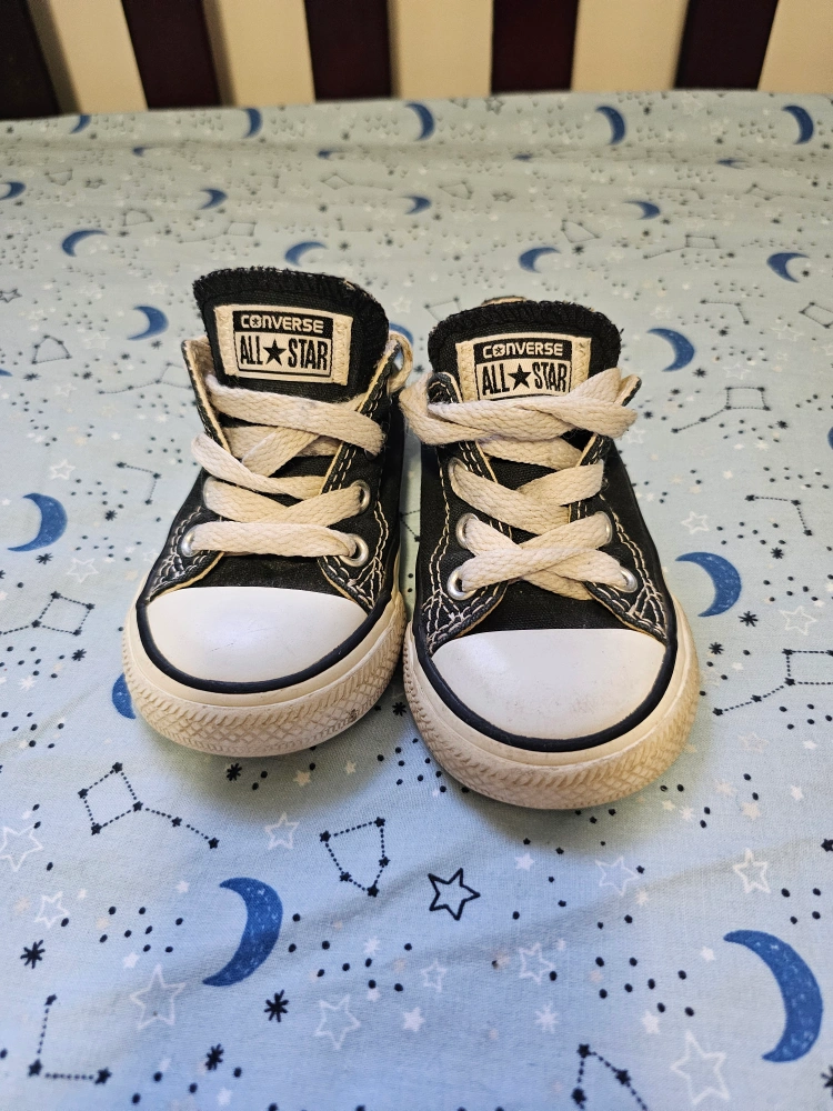 Black baby Converse All Star sneakers. Lace ups. Great tred. Size 5.