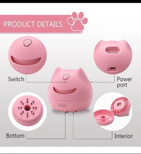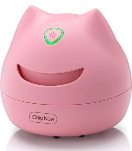Small pink desktop vacuum cleaner with cat ears. One button operation.