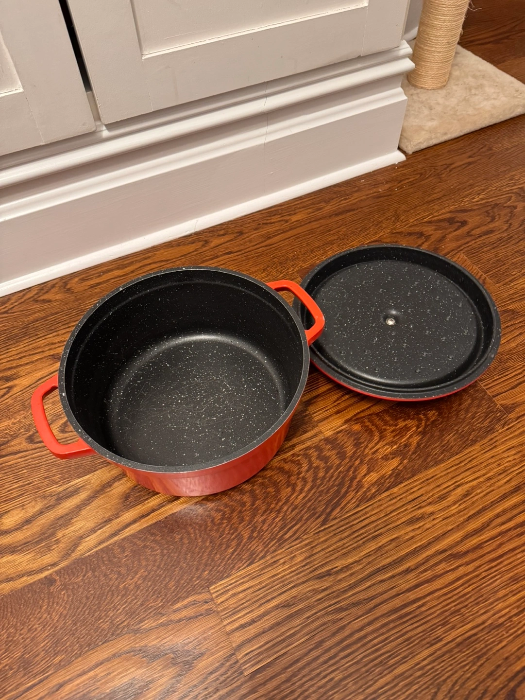 Baumalu aluminum nonstick dutch oven (NOT CAST IRON). Has seen some action but still in good condition.