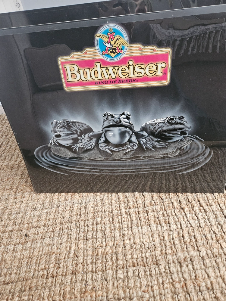 Set of 4 vintage Budweiser coasters. All are different designs with a frog theme, plus the Bruce Lee piece.