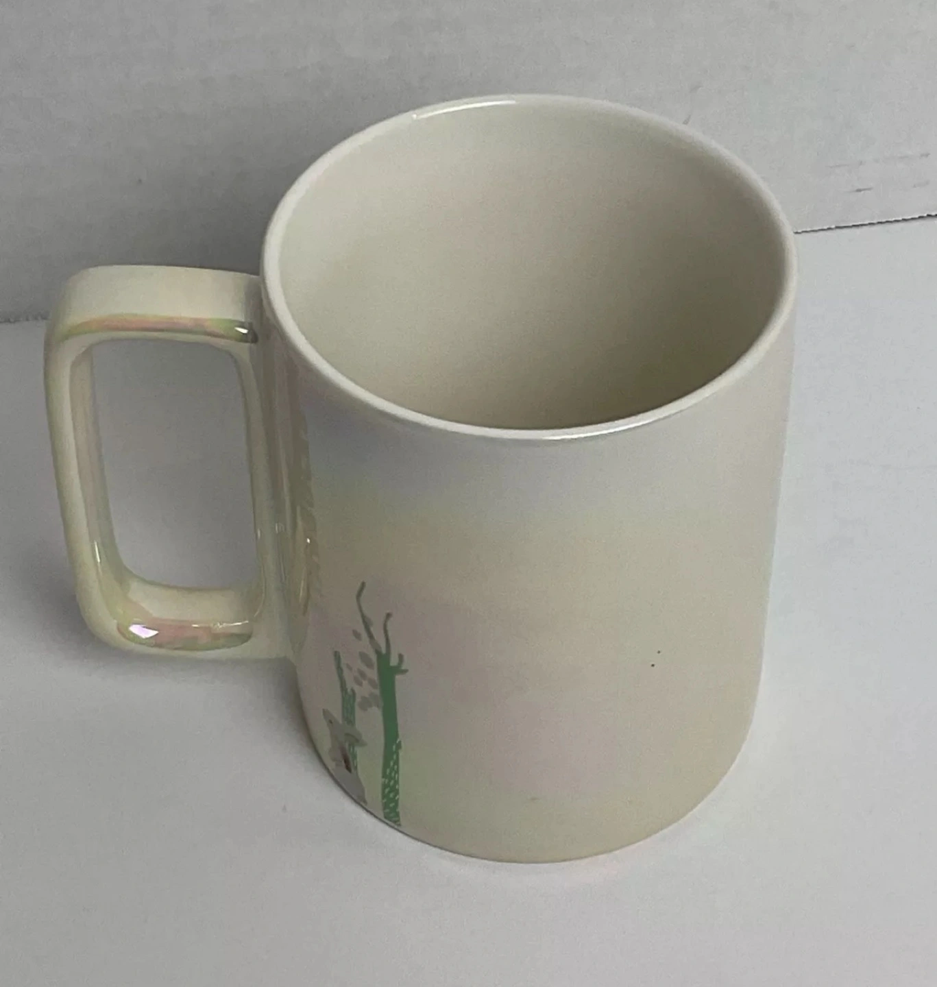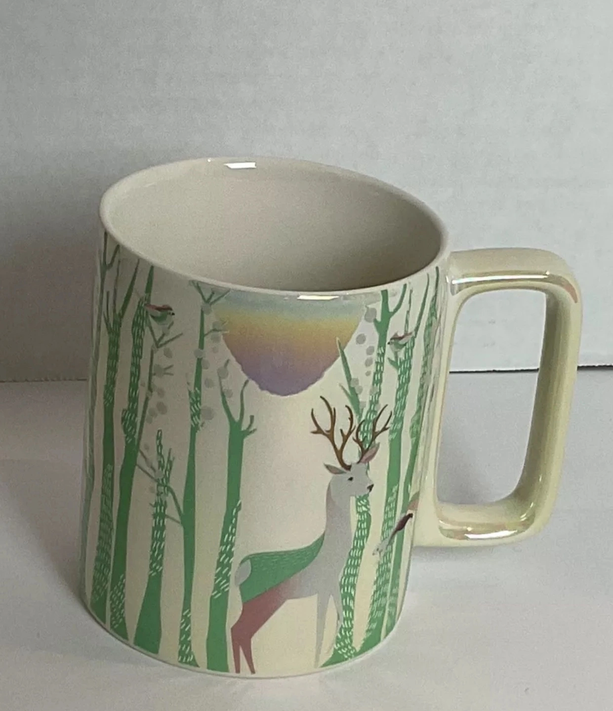 This Starbucks coffee mug features a beautiful iridescent design with a holiday deer forest theme. It has a 14 oz capacity and is perfect for any coffee or tea lover. The mug is an original, pre-owned piece from 2020 and is ideal for collectors of Starbucks memorabilia. The multi-color design is eye-catching and adds a festive touch to any morning routine. This item is a must-have for any coffee mug collector and is sure to bring a smile to your face.