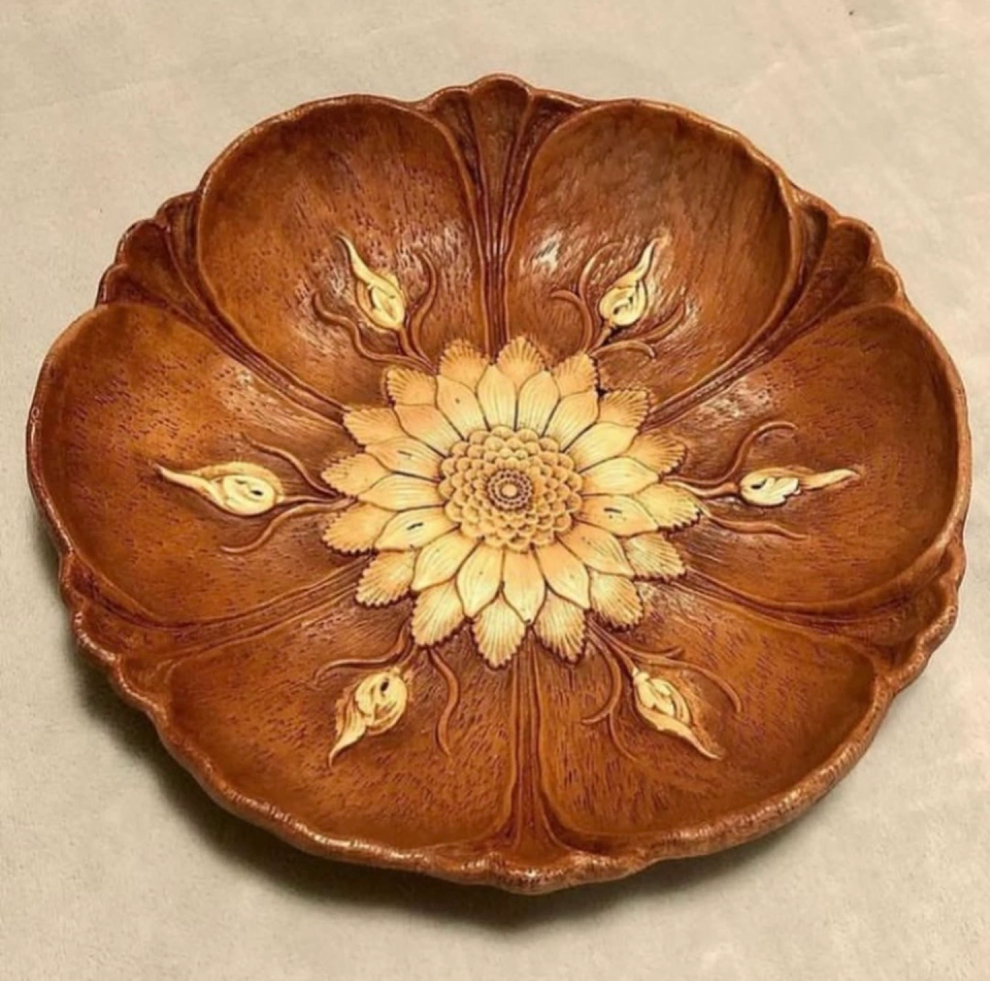 Multi Prod Inc USA. Mid century decorative plate/ bowl. Faux wood. multiprodinc #vintage #vintagedishes 💫