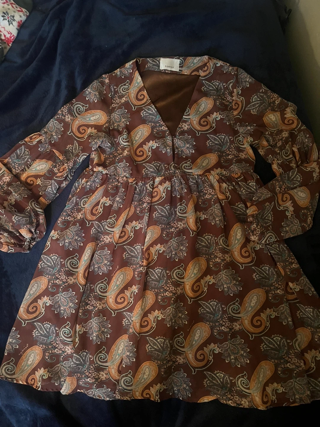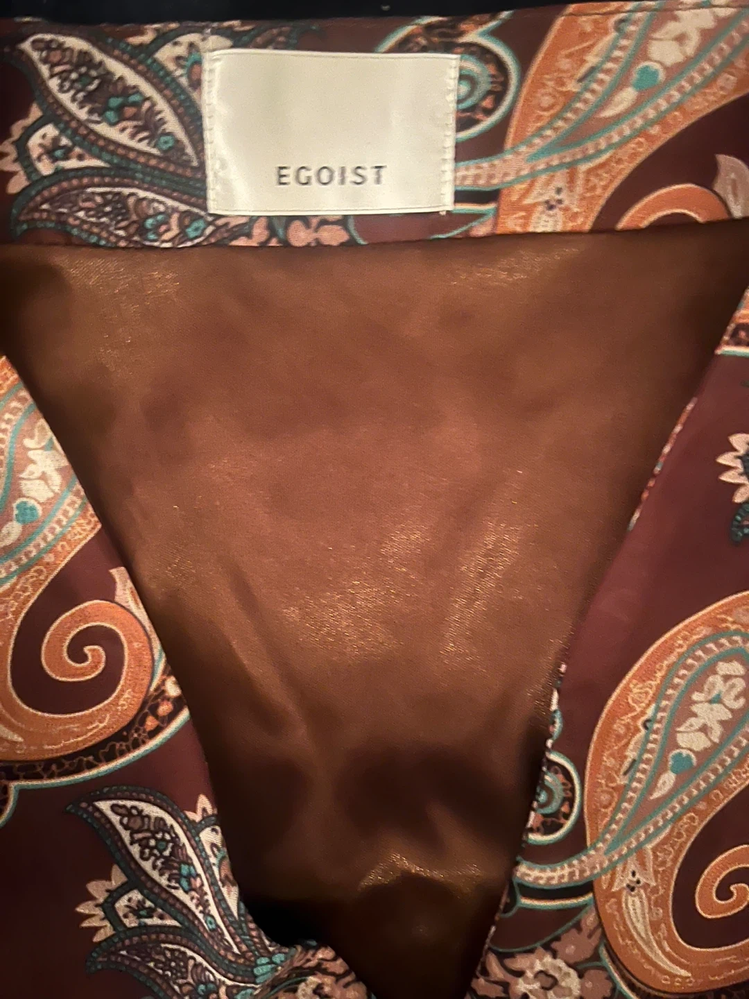 This EGOIST dress features a classic paisley print and long sleeves. It's a stylish piece for your wardrobe. The dress has a V-neckline and a flowy skirt. Original price is more than $250