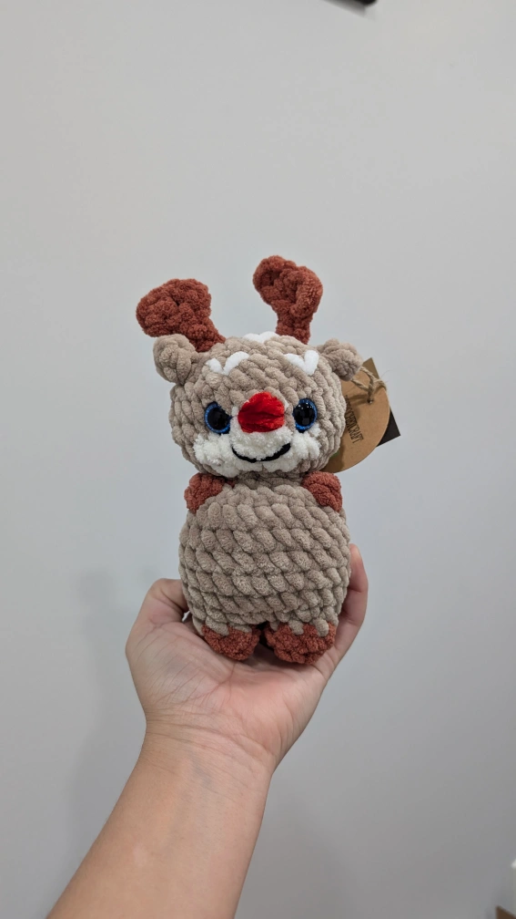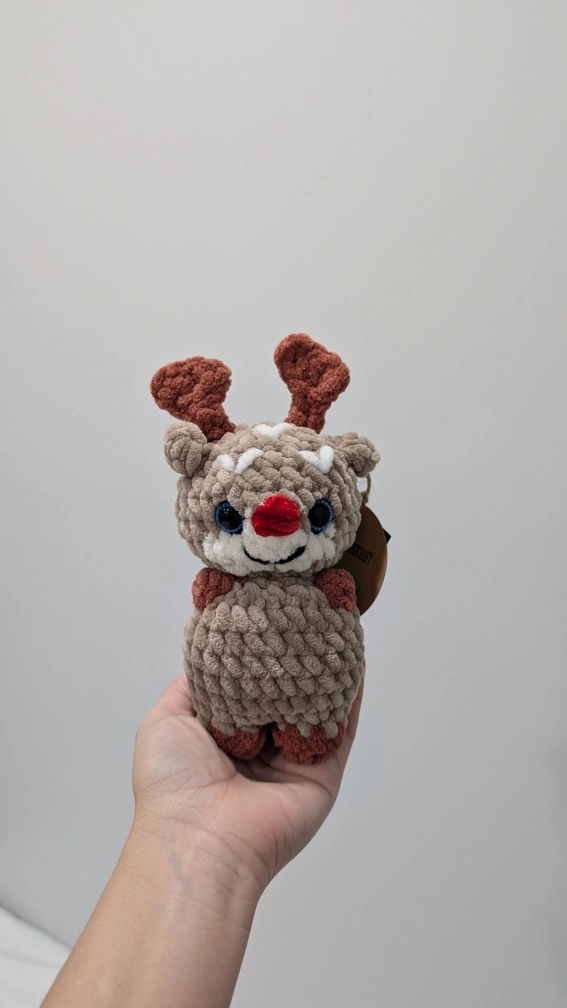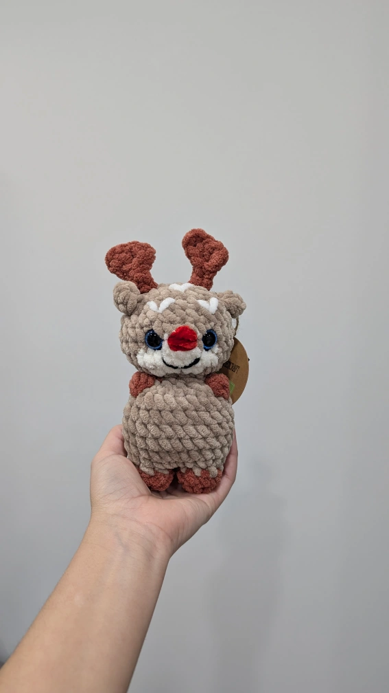 Crocheted Reindeer Plush Toy, handmade plushies, Reindeer