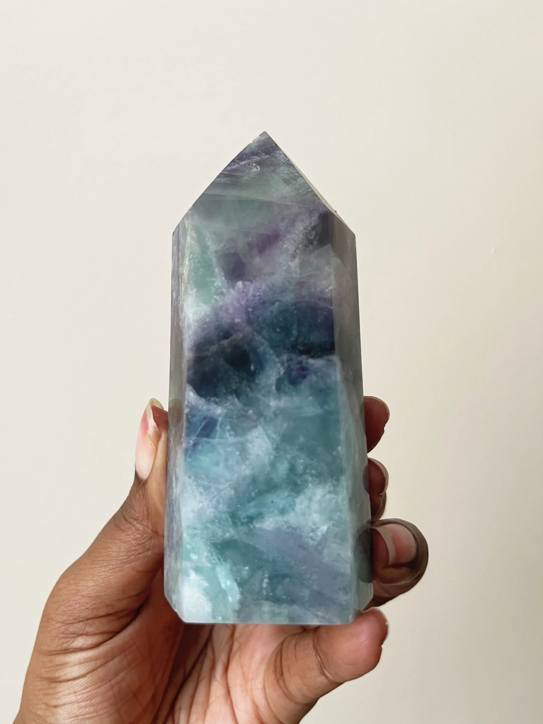 Beautiful, rainbow multi-coloured fluorite crystal tower. Green, blue and purple colours ๐๐๐