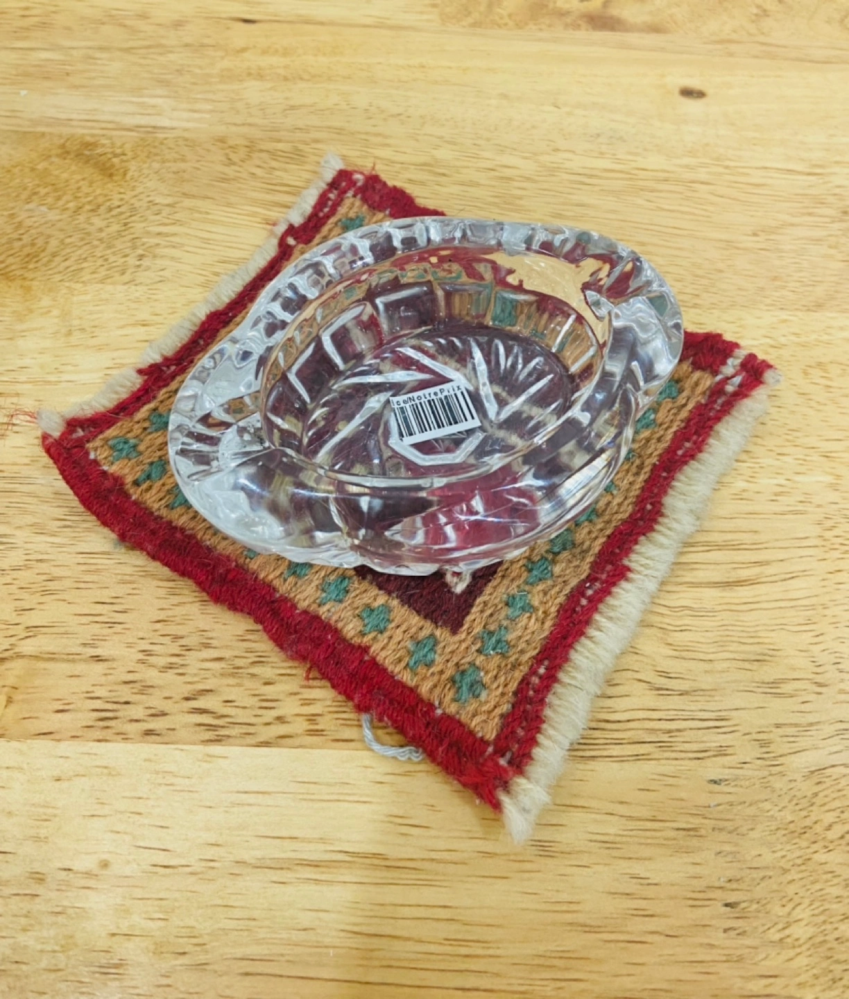 Small crystal ashtray, perfect for a small space. No chips or cracks, just some minor wear from use. Size L4.5x3w