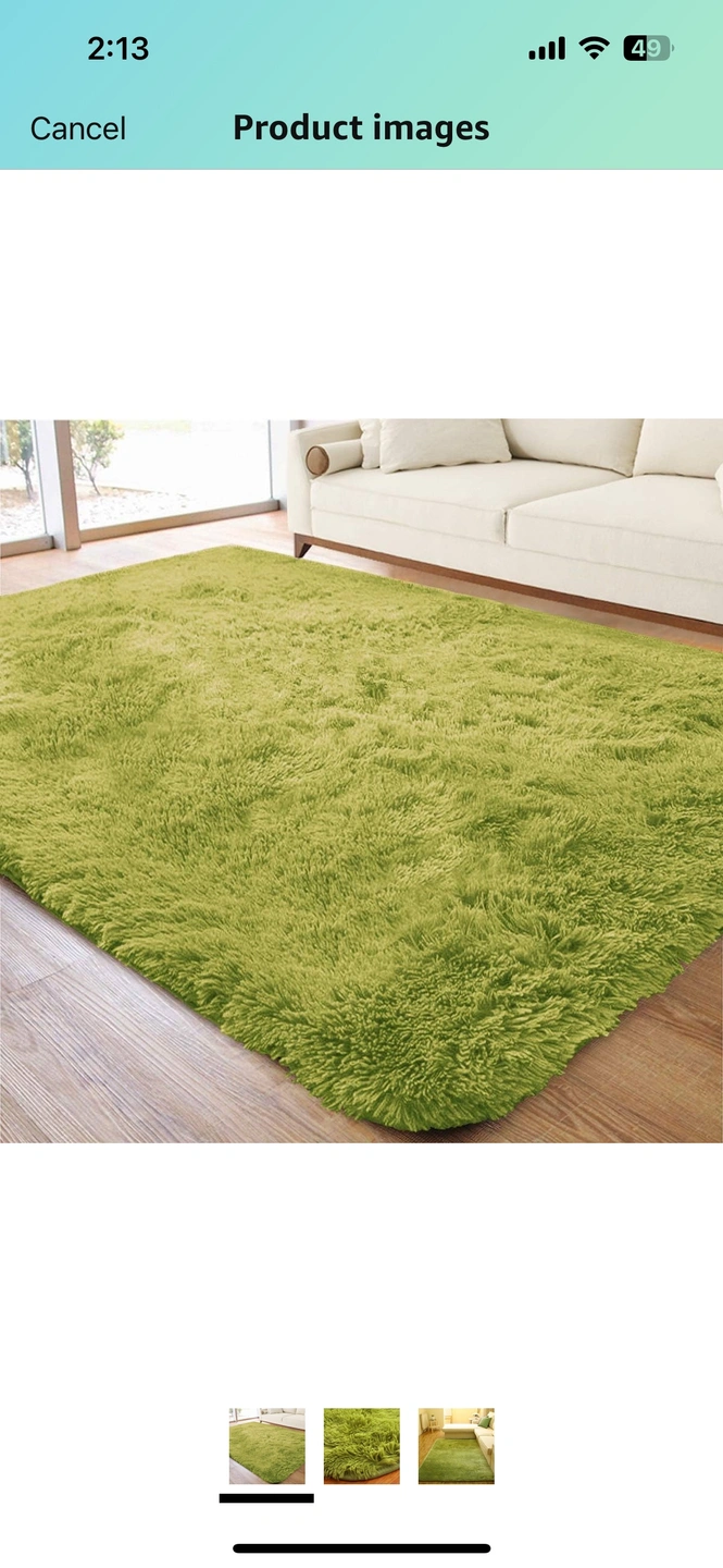 Soft and plush green rug. Perfect for adding a touch of colour and comfort to any room. Great condition, has only been used in a smoke-free home.