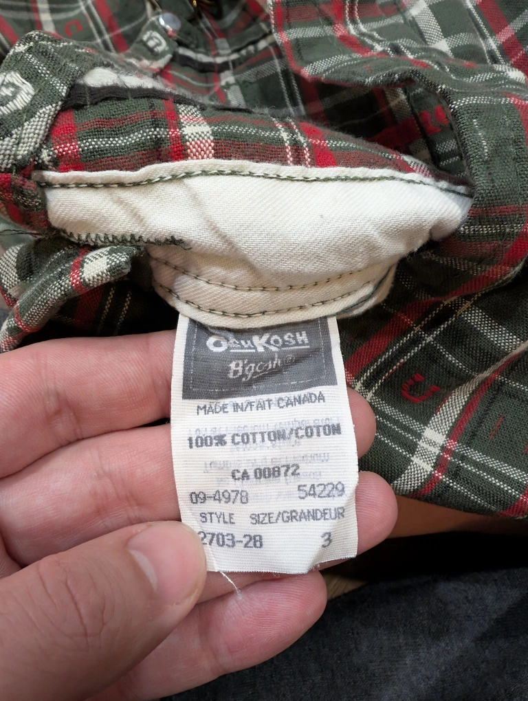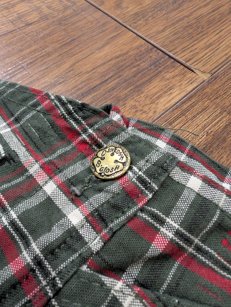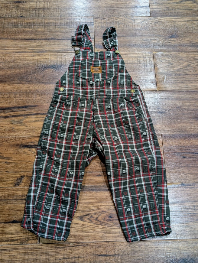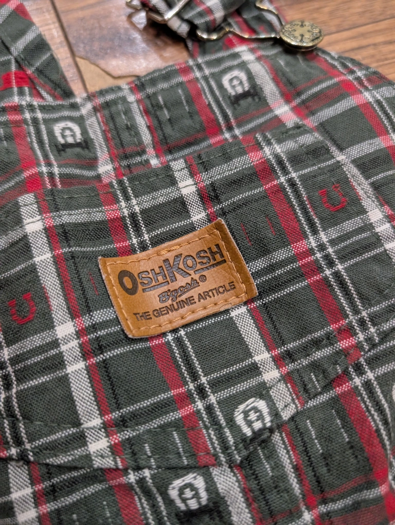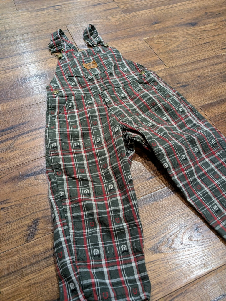 Vintage Oshkosh B'gosh plaid overalls with a horseshoe print. Made in Canada, 100% cotton. Size 3. Smoke free/Pet Free home.