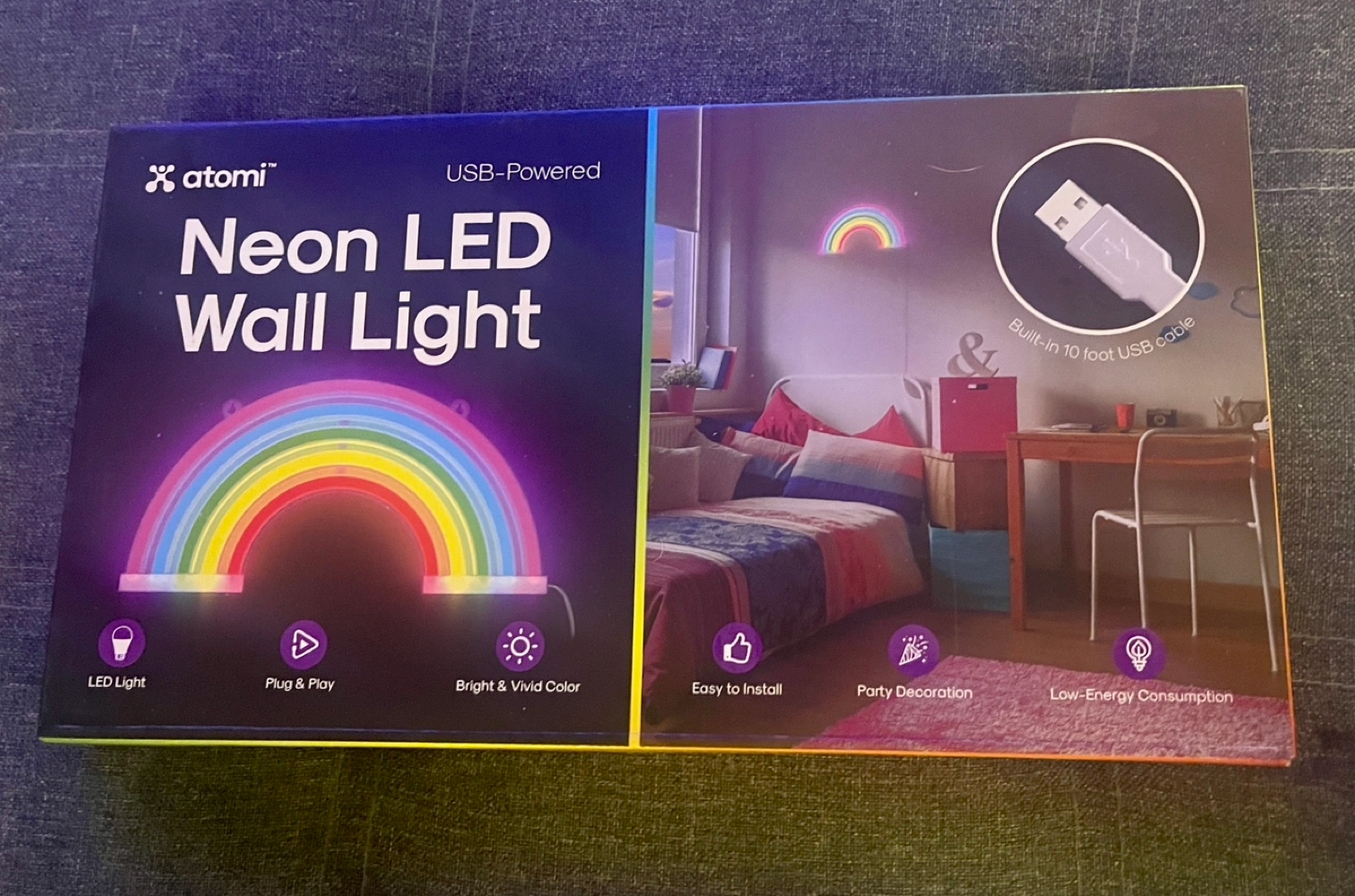 USB-powered RAINBOW NEON LED wall light. Easy to install, plug and play. Bright and vivid colors. Low energy consumption. Party decoration.