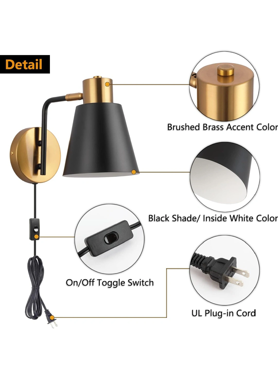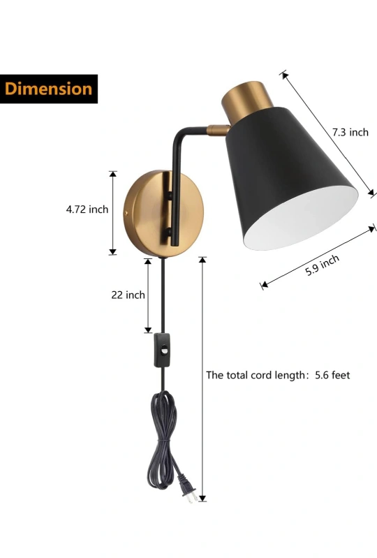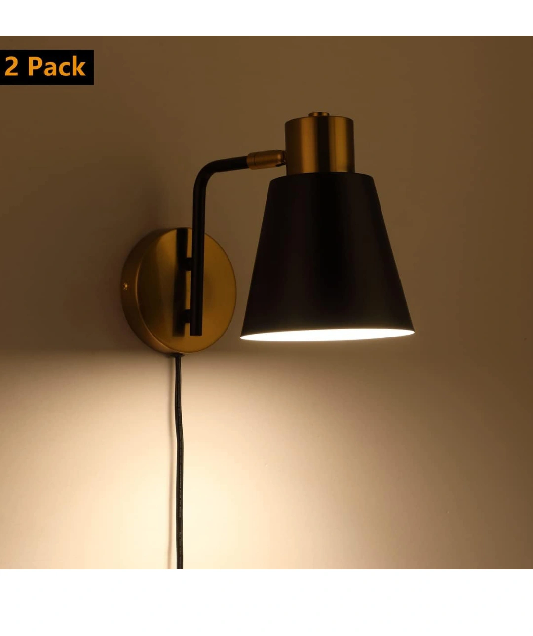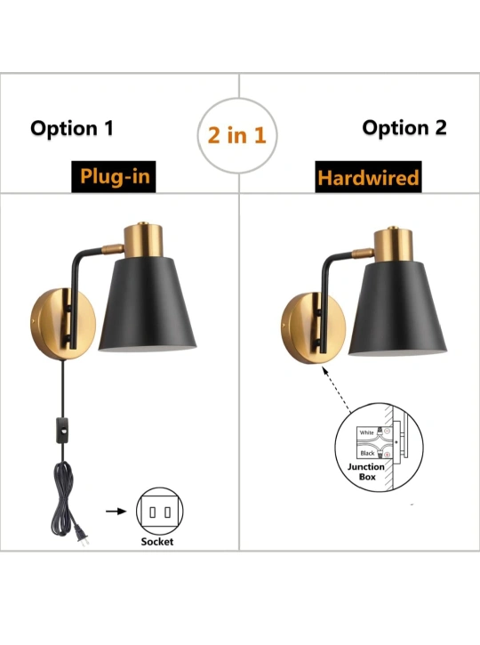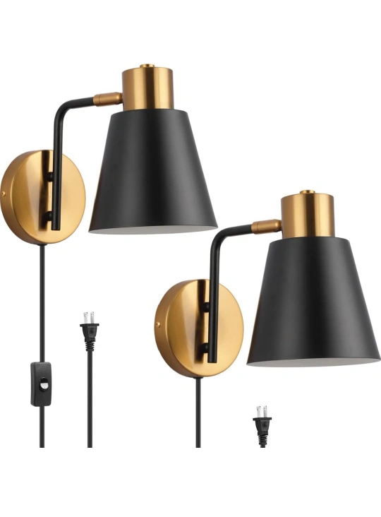 KOONTING® Plug in Wall Sconce 2 Pack, Modern Rotatable Wall Lamp with Plug-in Cord and On/Off Toggle Switch, Metal Shade Wall Light Fixture for Headboard Bedroom Living Room