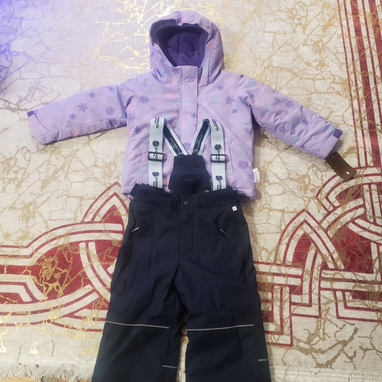 Brand new Girls Purple snowsuit with snowflake print. Includes jacket and bib pants.Never used great for Winter for sale only $50 for more info contact me anytime ๐