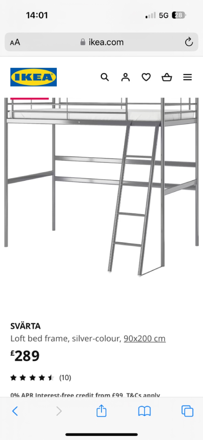 SVÄRTA loft bed frame in silver. Includes ladder. Disassembled. Used but in good condition.