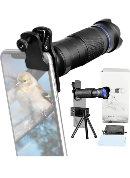 36X Phone Telephoto Lens Kit with Mini Tripod & Phone Clip Phone Holder & Lens Bag & Cleaning Cloth for Hiking Camping Wildlife Observation Moon Sports Game Concert Watching.