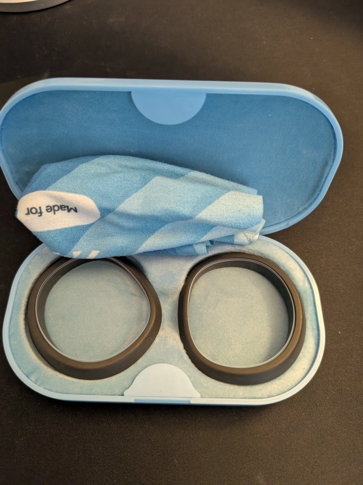 Purchased around 1 year ago. Rarely used it. It's almost like new. I have made custom powered lenses suitable for people with -2 to -3 power which I can give away. Comes with a travel case.