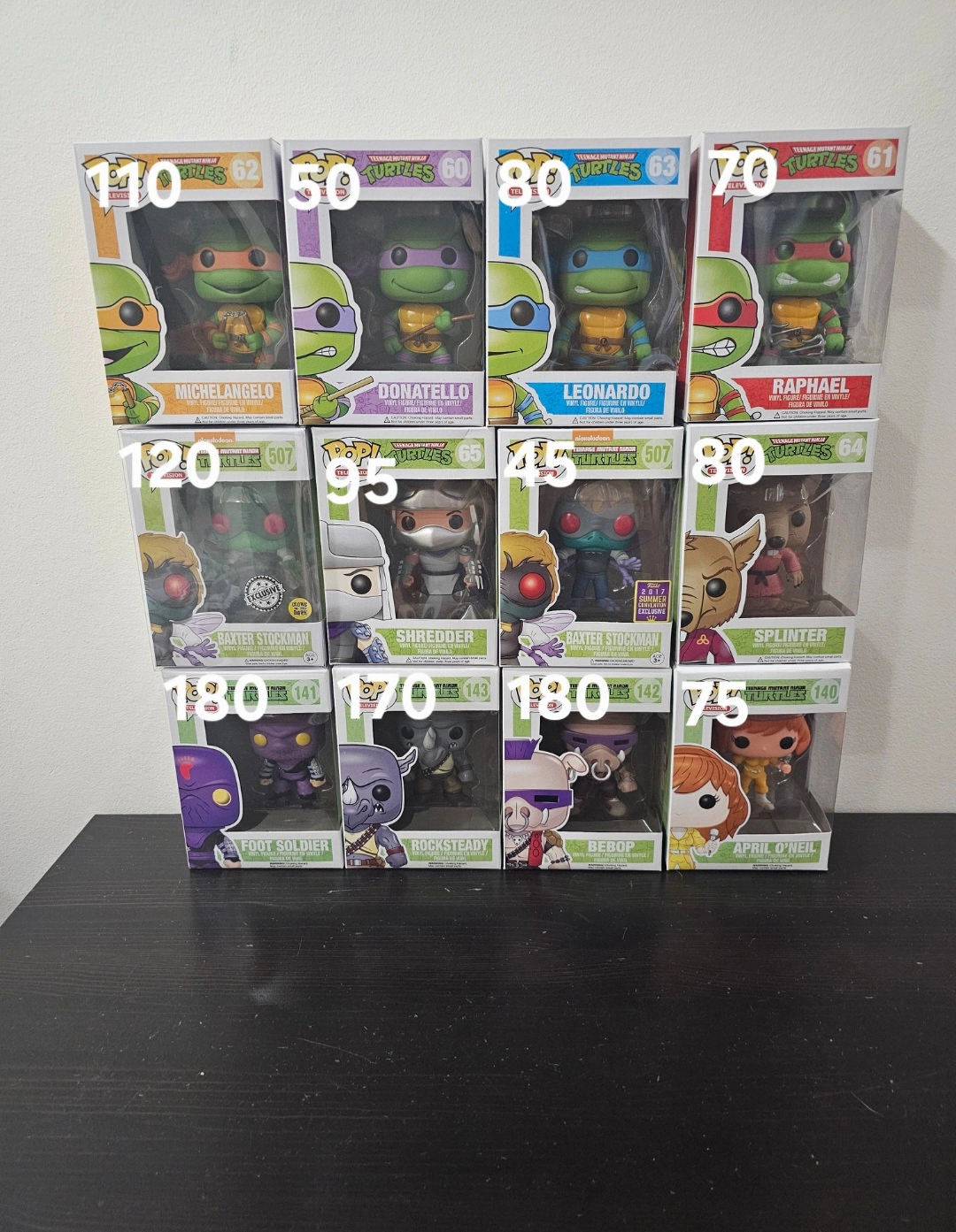 meetup at warden and bamburgh circle mcdonalds Teenage Mutant Ninja Turtles Pop Vinyls and Marvel Civil War 5-pack. All figures are new in box and in excellent condition. Prices in pictures.