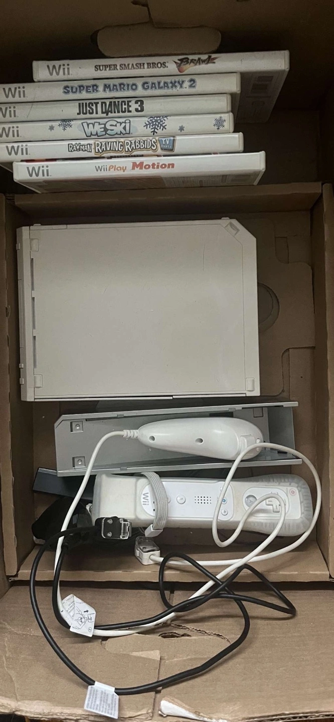 Nintendo White Wii console with Wii Remote and Nunchuk it’s missing one of the wires but I have everything else