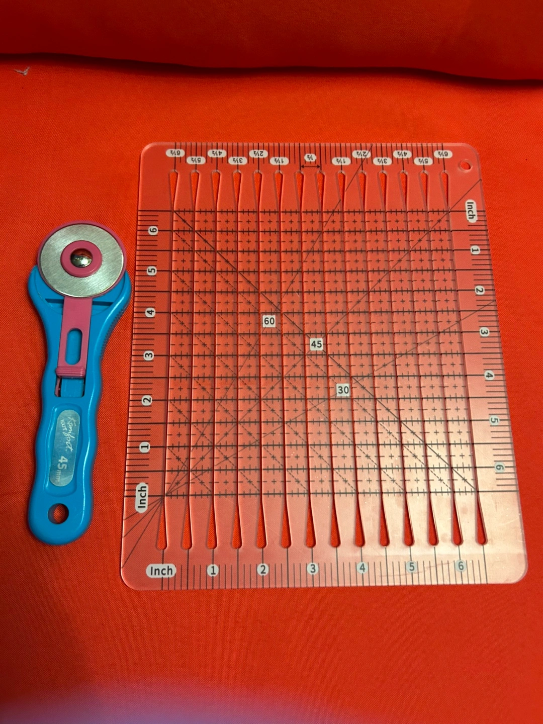 Today I am giving away a 45mm Rotary cutter and ruler set as they are duplicates. I am really hoping to connect to fellow quilters and people who want to learn how.