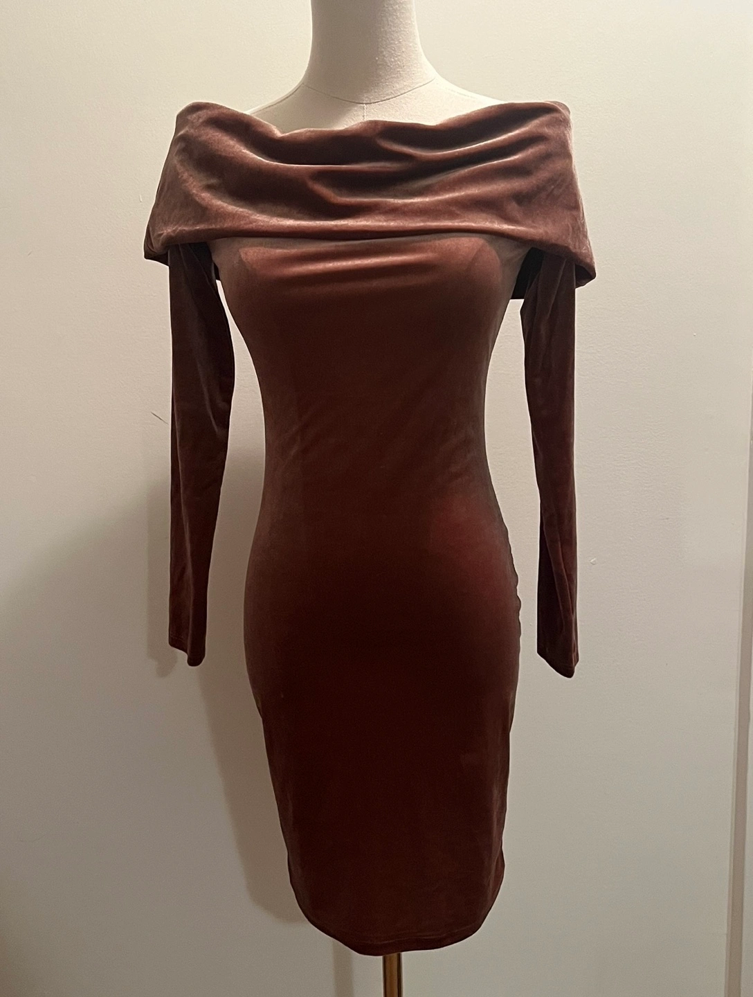 Forever 21 off the shoulder velvet midi dress (pink) sz S