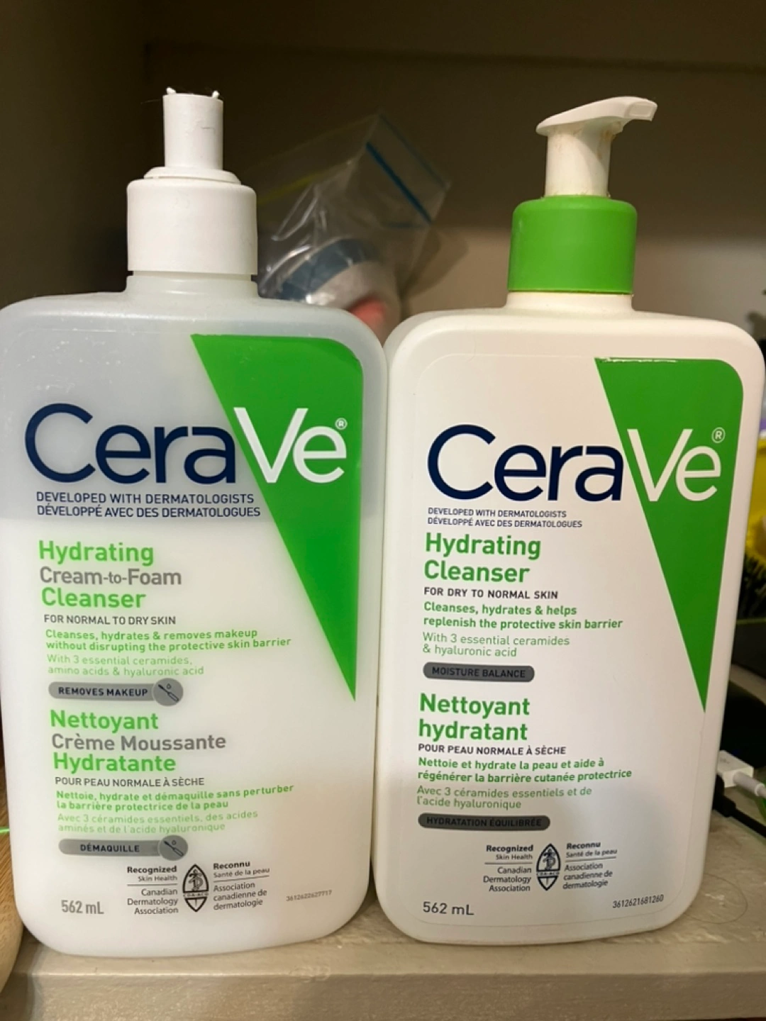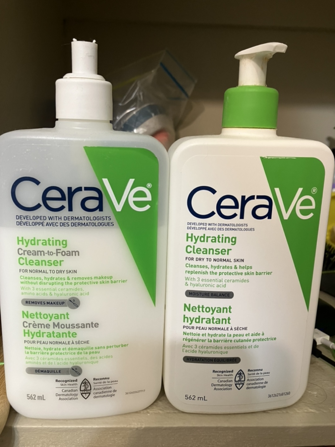 CeraVe Hydrating Cleanser. One for normal to dry skin and one for dry to normal skin. Both contain 3 essential ceramides.