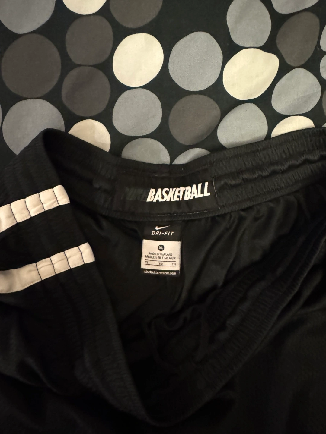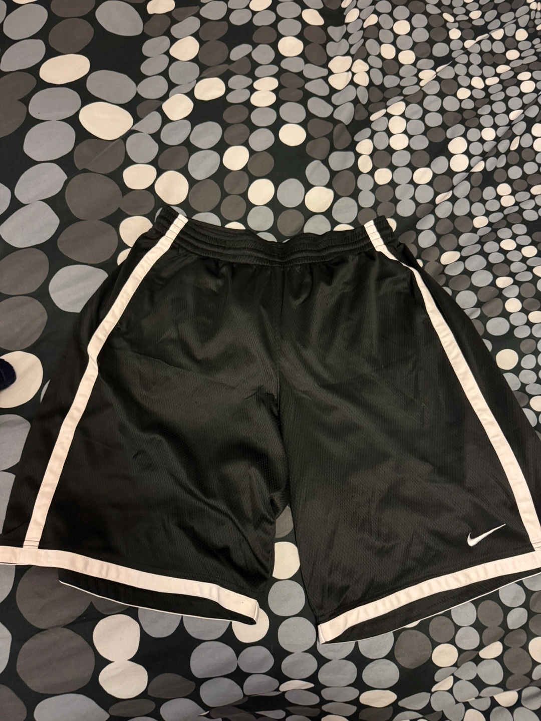 Black basketball shorts with white side stripes. Dri-FIT technology. Size XL.