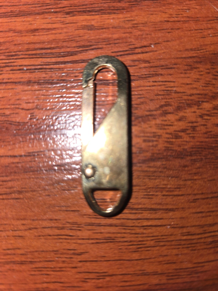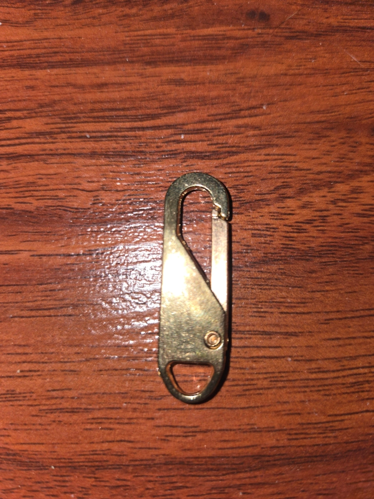 Small gold coloured clip-on zipper tab replacement. I ordered a few online thinking they were metal but they're actually metal-coloured plastic. Brand new, never used, except to try on the jacket i got it for. Please see photos for detail. Pick up in Kensington Market. Please check out my other listings, too, and let me know when you respond if anything else has caught your fancy!