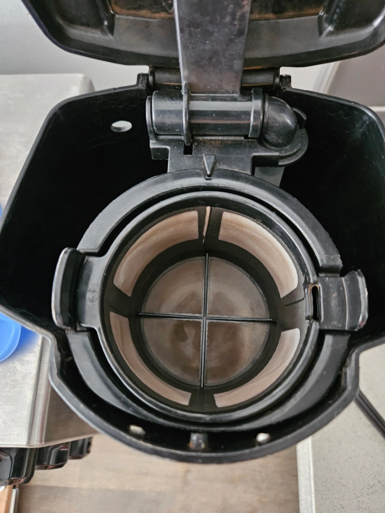 Barely used Black and silver coffee maker. Includes filter basket. In good condition.