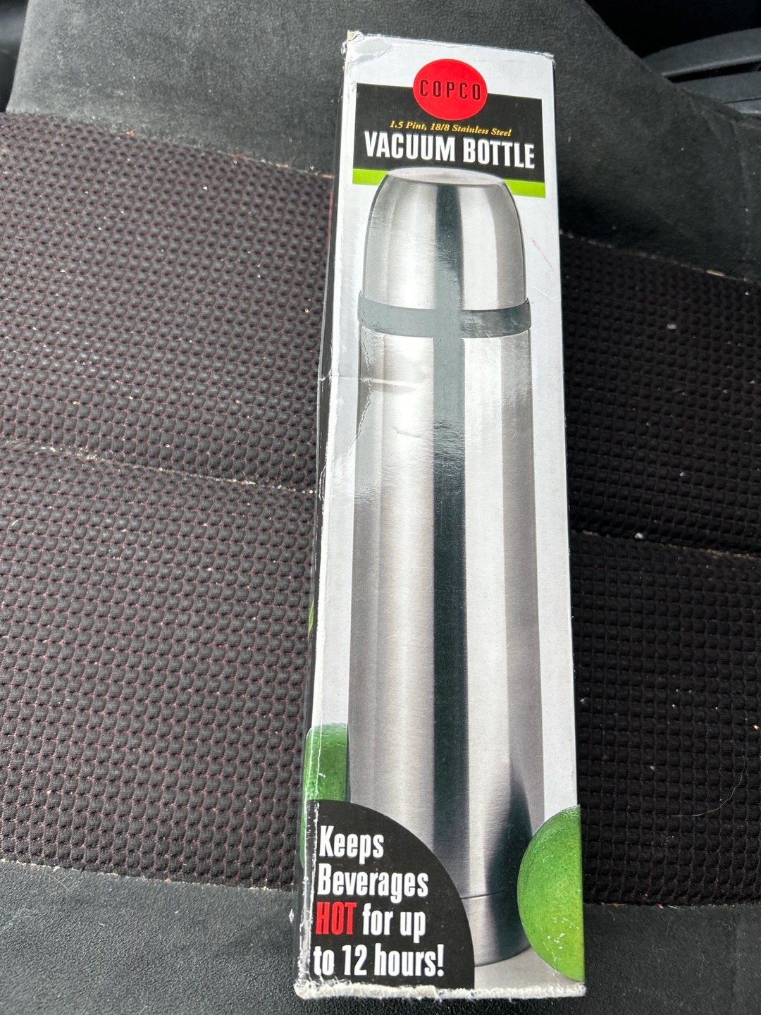 Keeps beverages hot for up to 12 hours. Easy push-button open and close. Perfect Pour spout for no-drip pouring from any angle. Unbreakable 18/8 brushed stainless steel interior and exterior. Extra-large 1.5 pint capacity. Compact size fits easily in briefcase, purse, luggage and more!