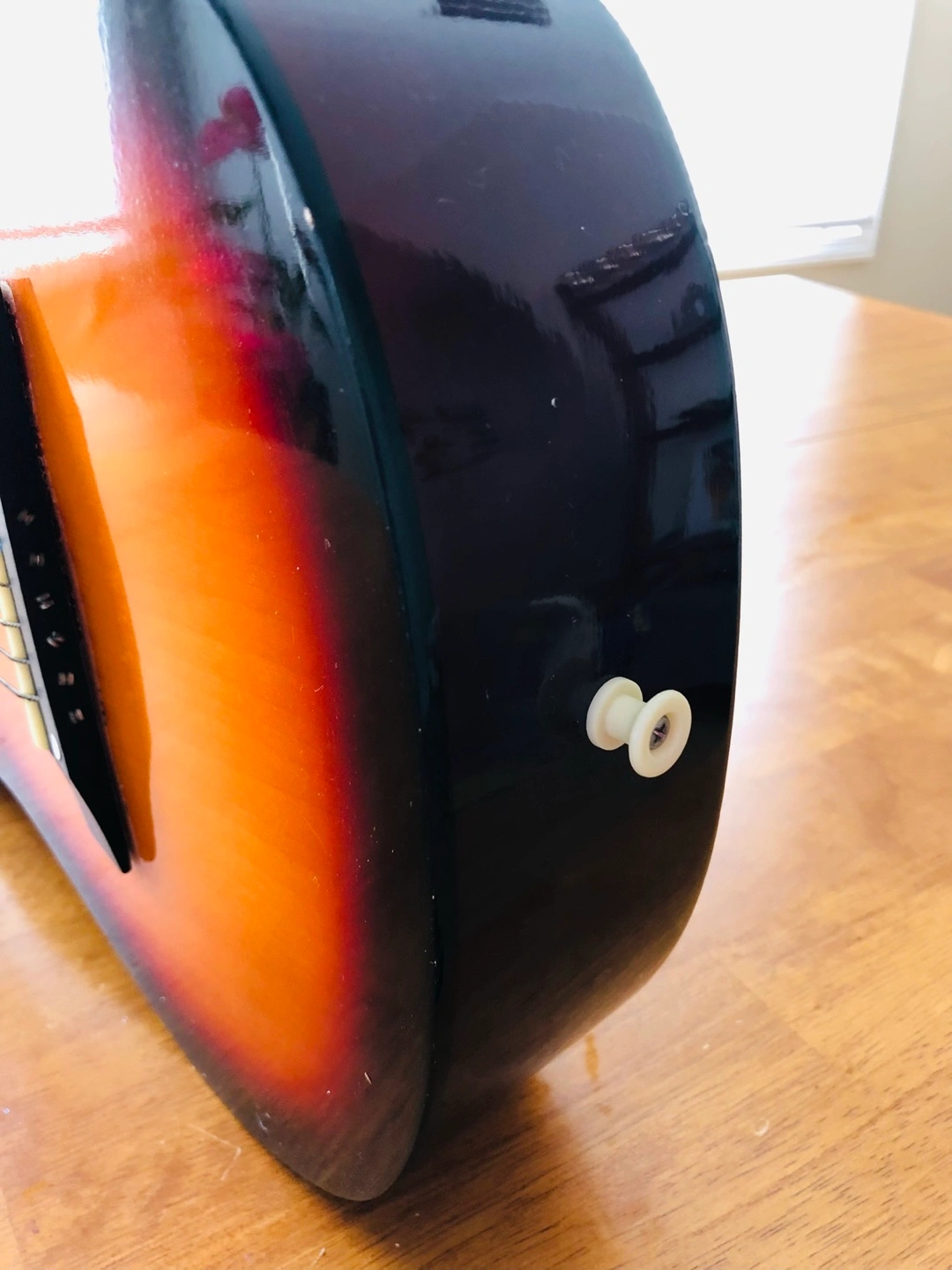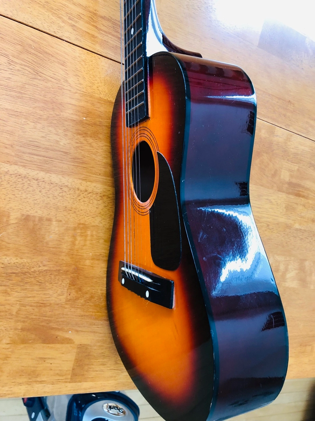 Acoustic guitar, sunburst finish. Made in China.