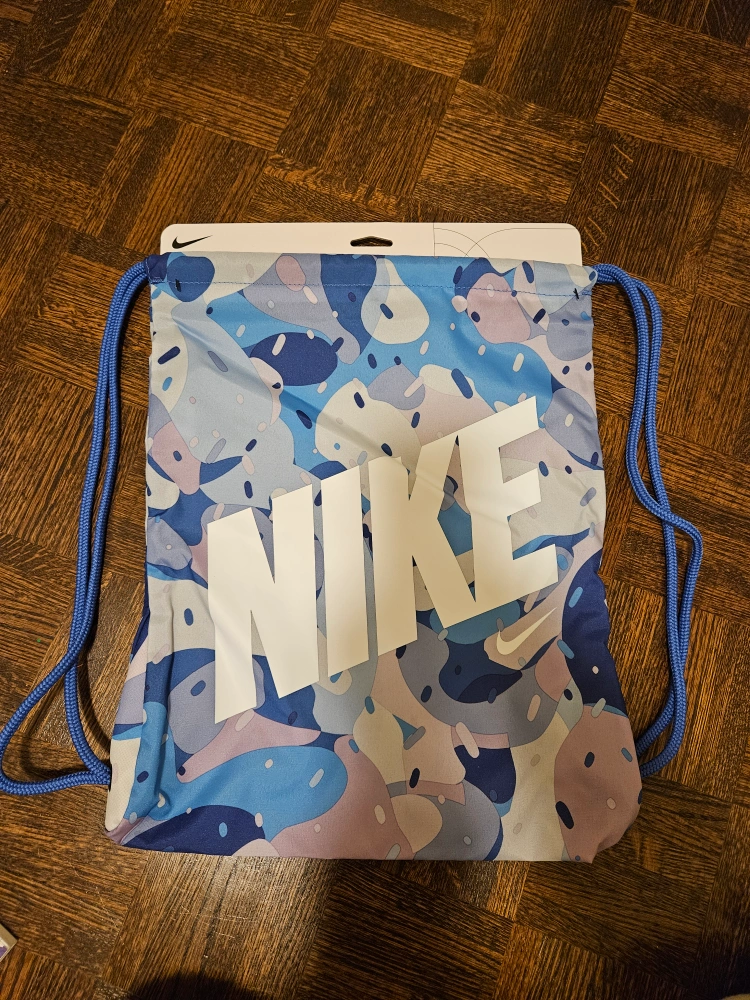Nike drawstring bag. Blue camo pattern. Drawstring closure.