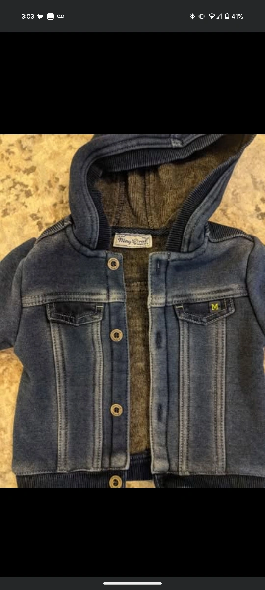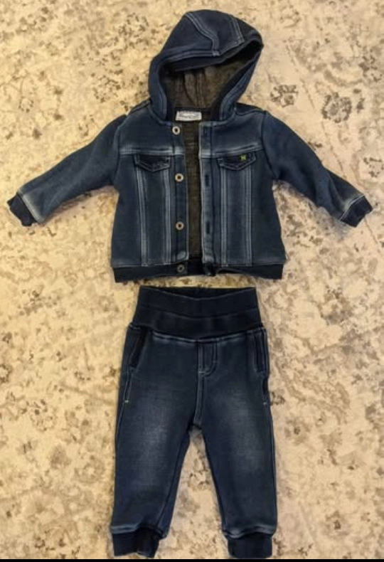 Baby Boy's Fleece "Denim" Jacket and Pants set. 4-6months
