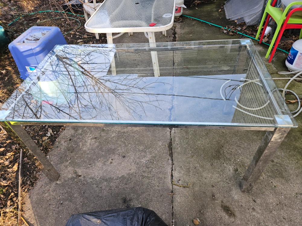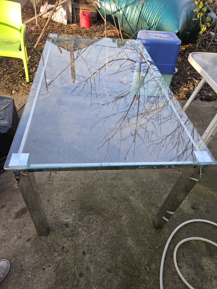 Glass dining table with chrome legs. Good condition. asking 75.00 obo