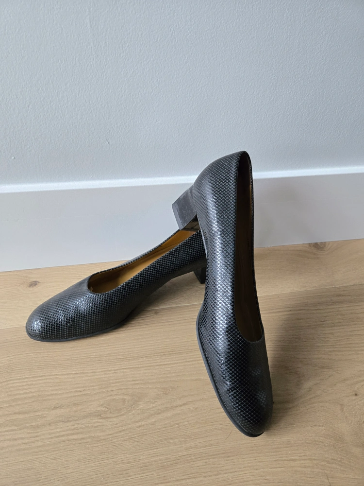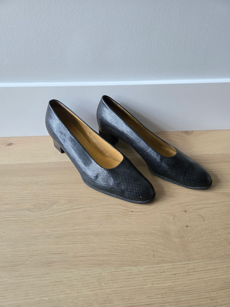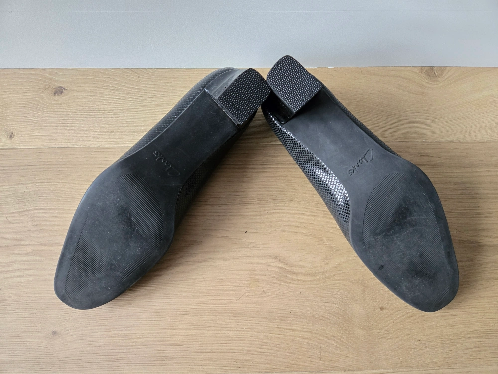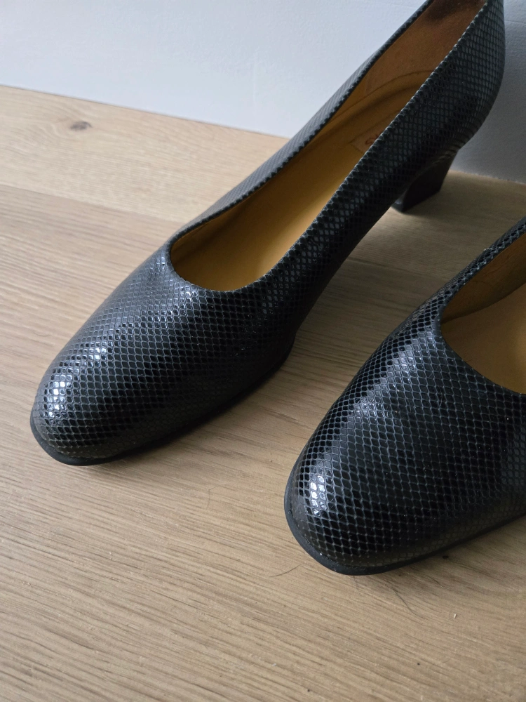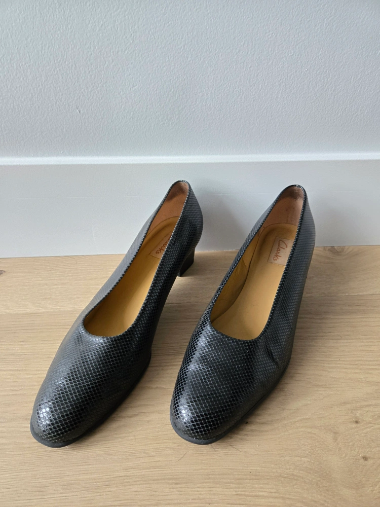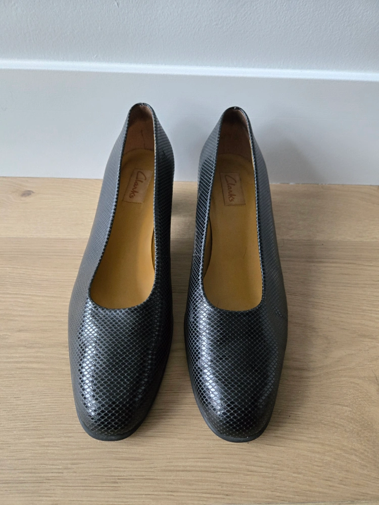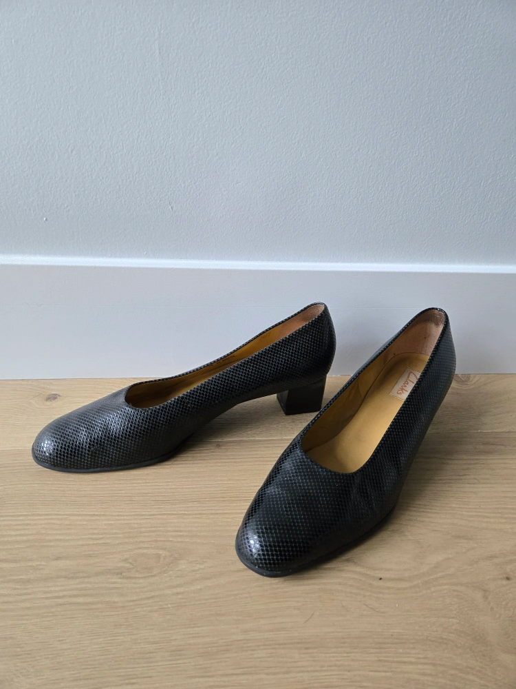Vintage Black Snakeskin Clarks Heels. size 11. euc