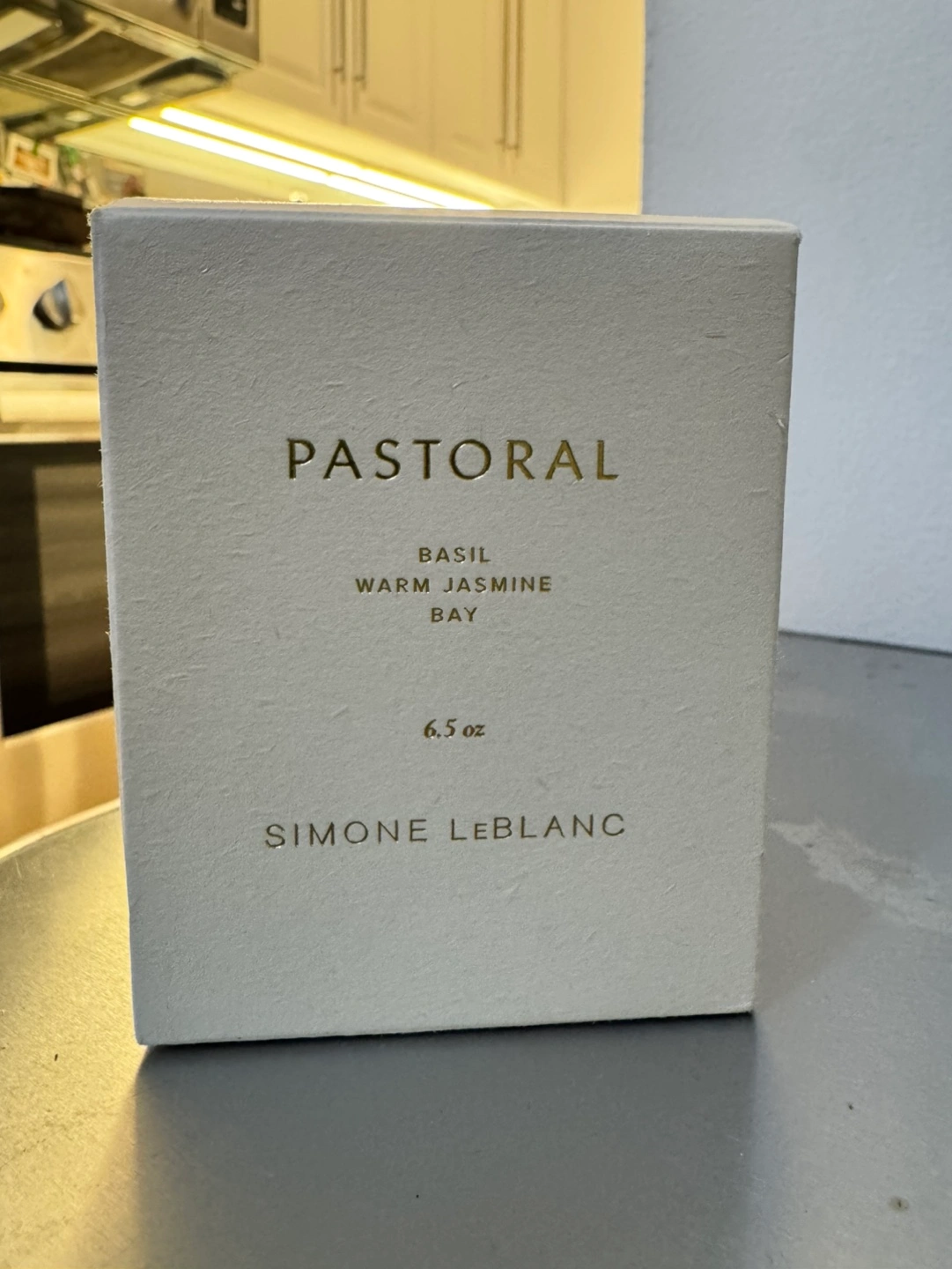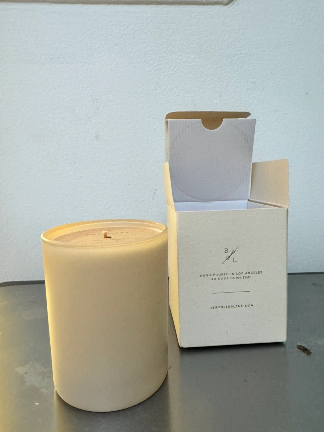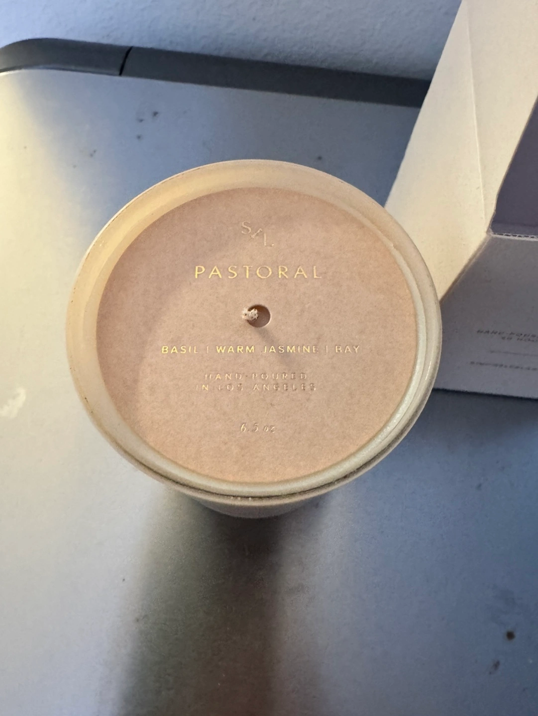 Scented candle in a glass jar. Basil, Warm Jasmine, Bay scent. 6.5 oz. Hand-poured in Los Angeles. Pickup on 72nd and 1st in Manhattan. Preference given to those who can pickup by 2/9.