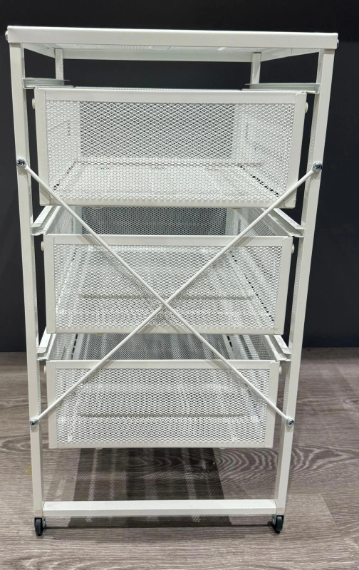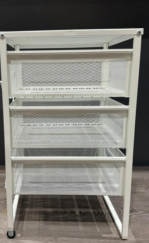 Four mesh drawers, rolling on two wheels.