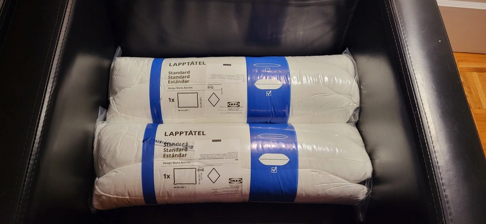 Two IKEA LAPPTÄTEL pillows. High, standard size. Prefer they go out together so it's 2/$15.00