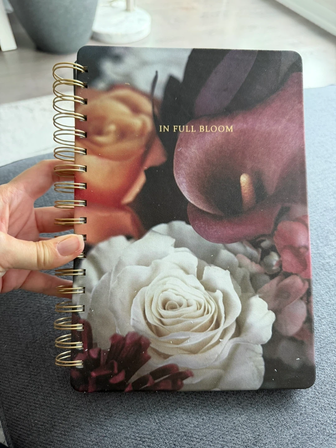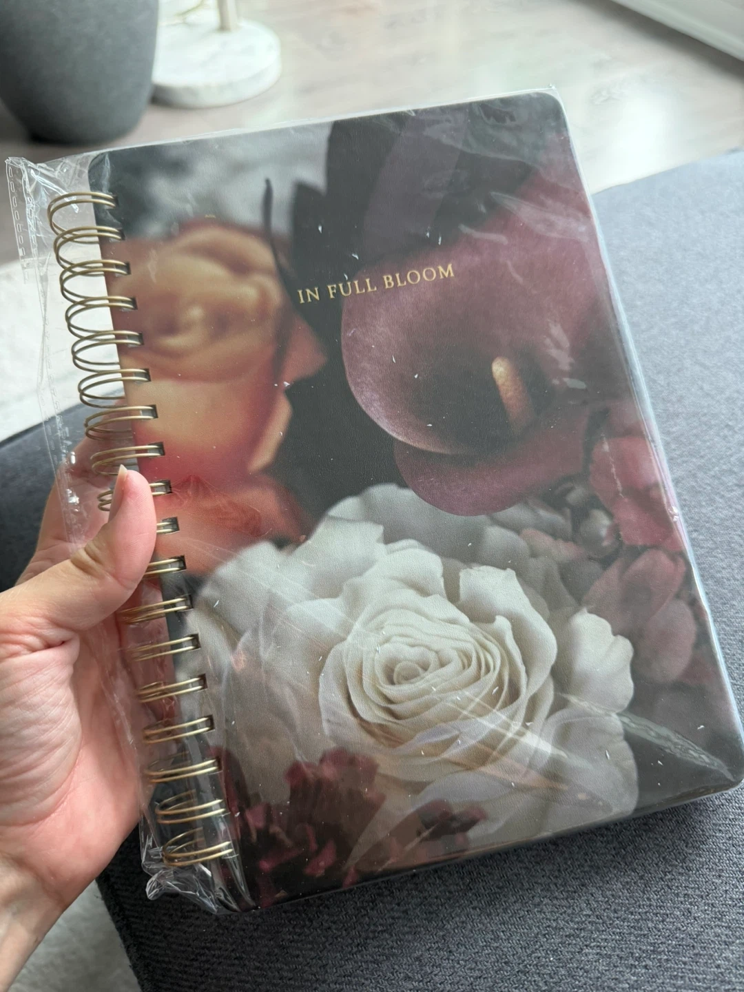 Selling a brand new journal with a beautiful floral cover. The journal is spiral-bound and features dot grid pages, perfect for journaling or note-taking