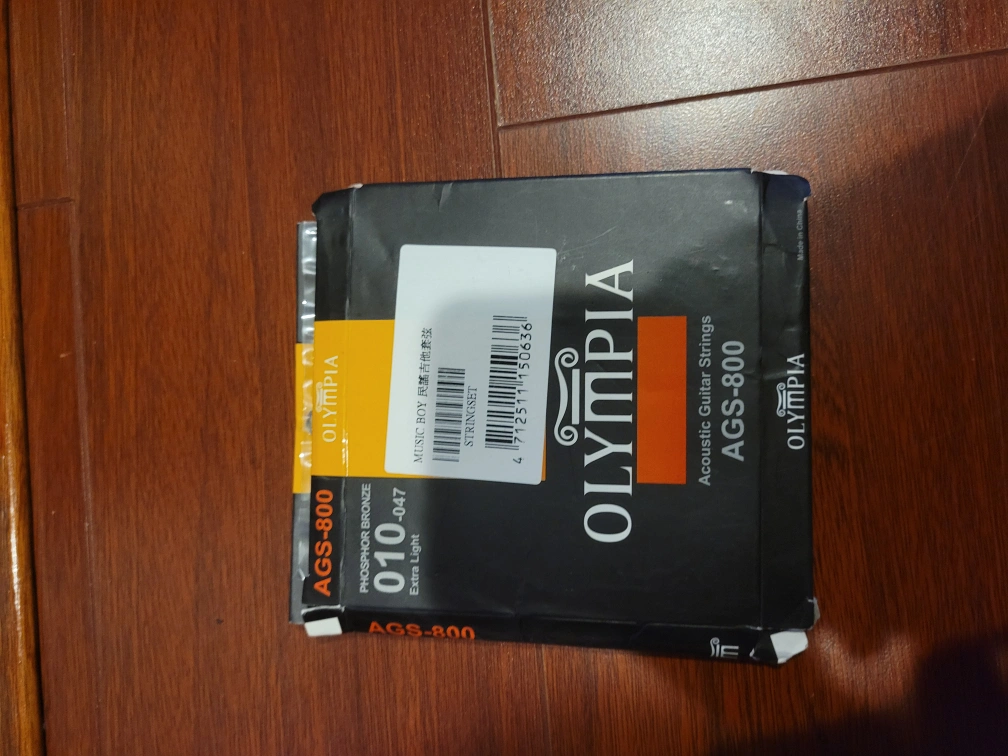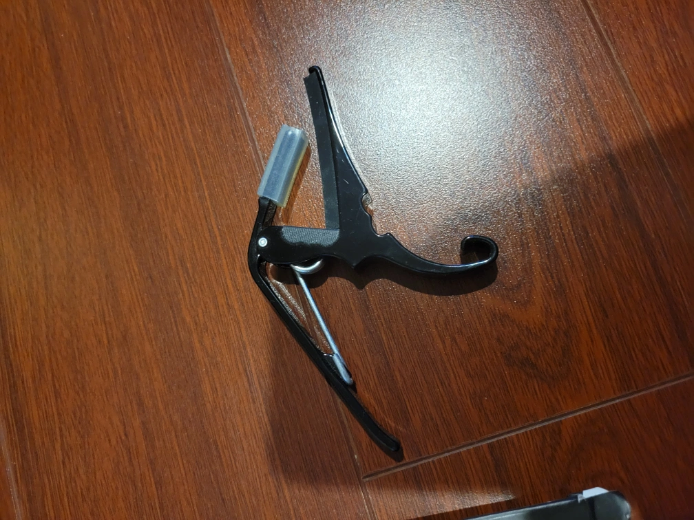 Yamaha acoustic guitar with gig bag and capo, and spare guitar strings to replace.