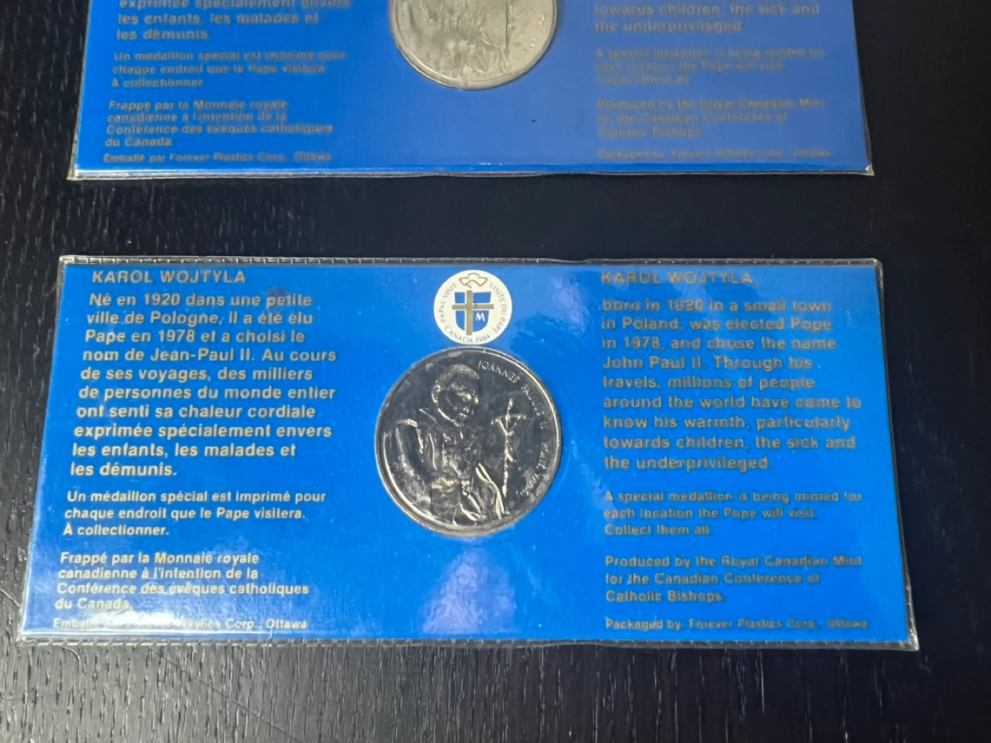 3 commemorative coins from Pope John Paul II's visit to Canada in 1984. Coins are in plastic sleeves and are unused.