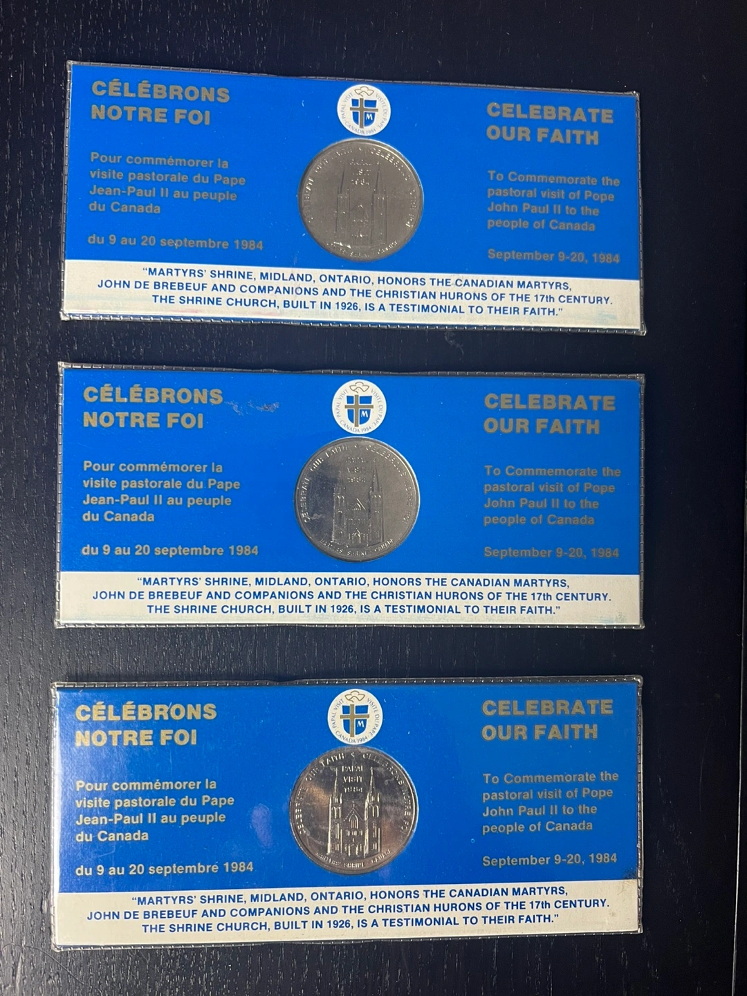 3 Commemorative Coins Pope John Paul II Visit to Canada 1984