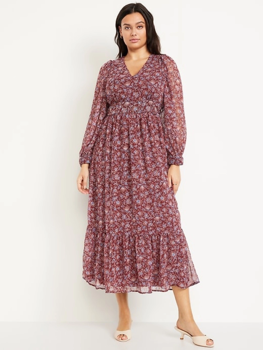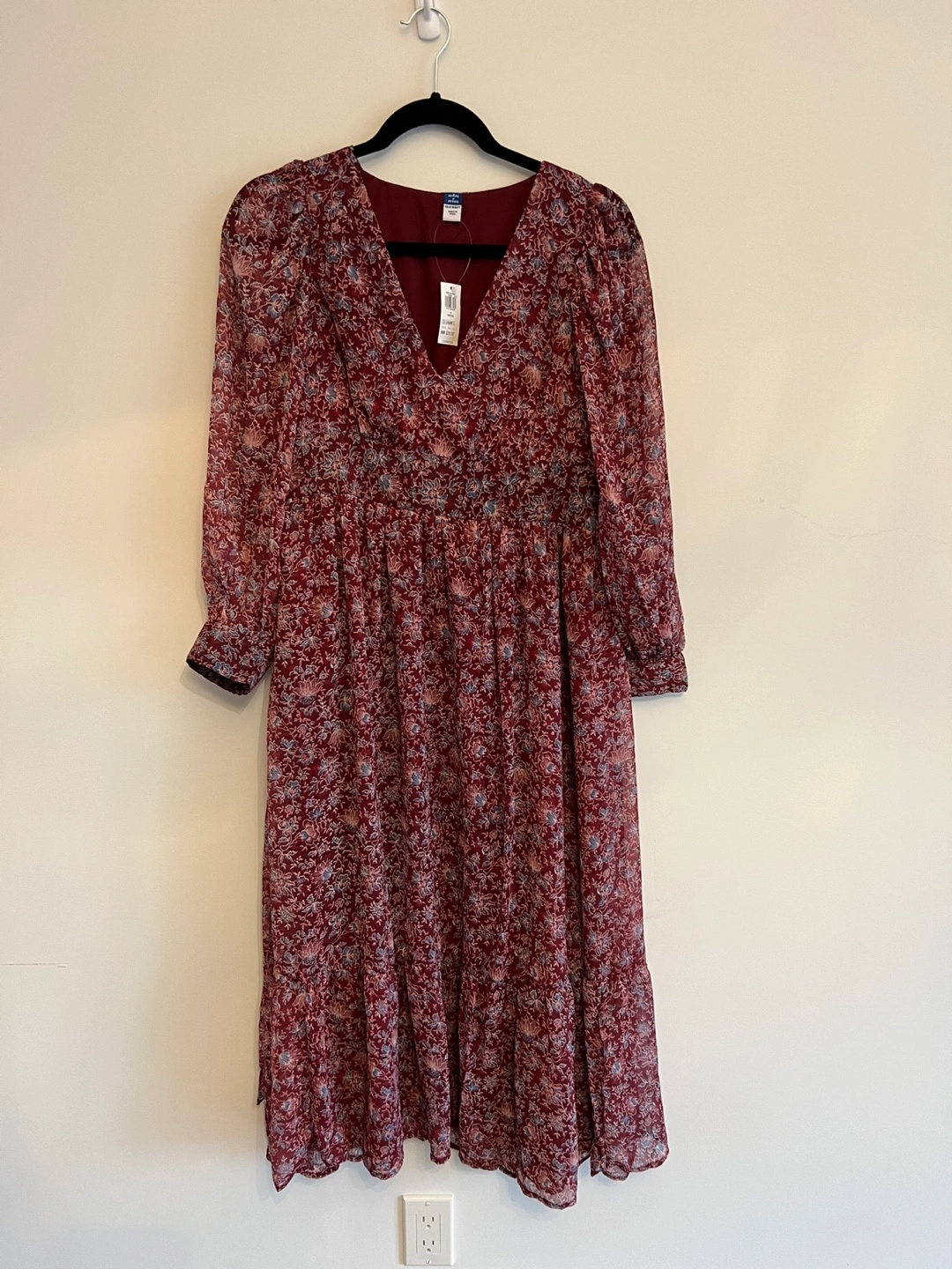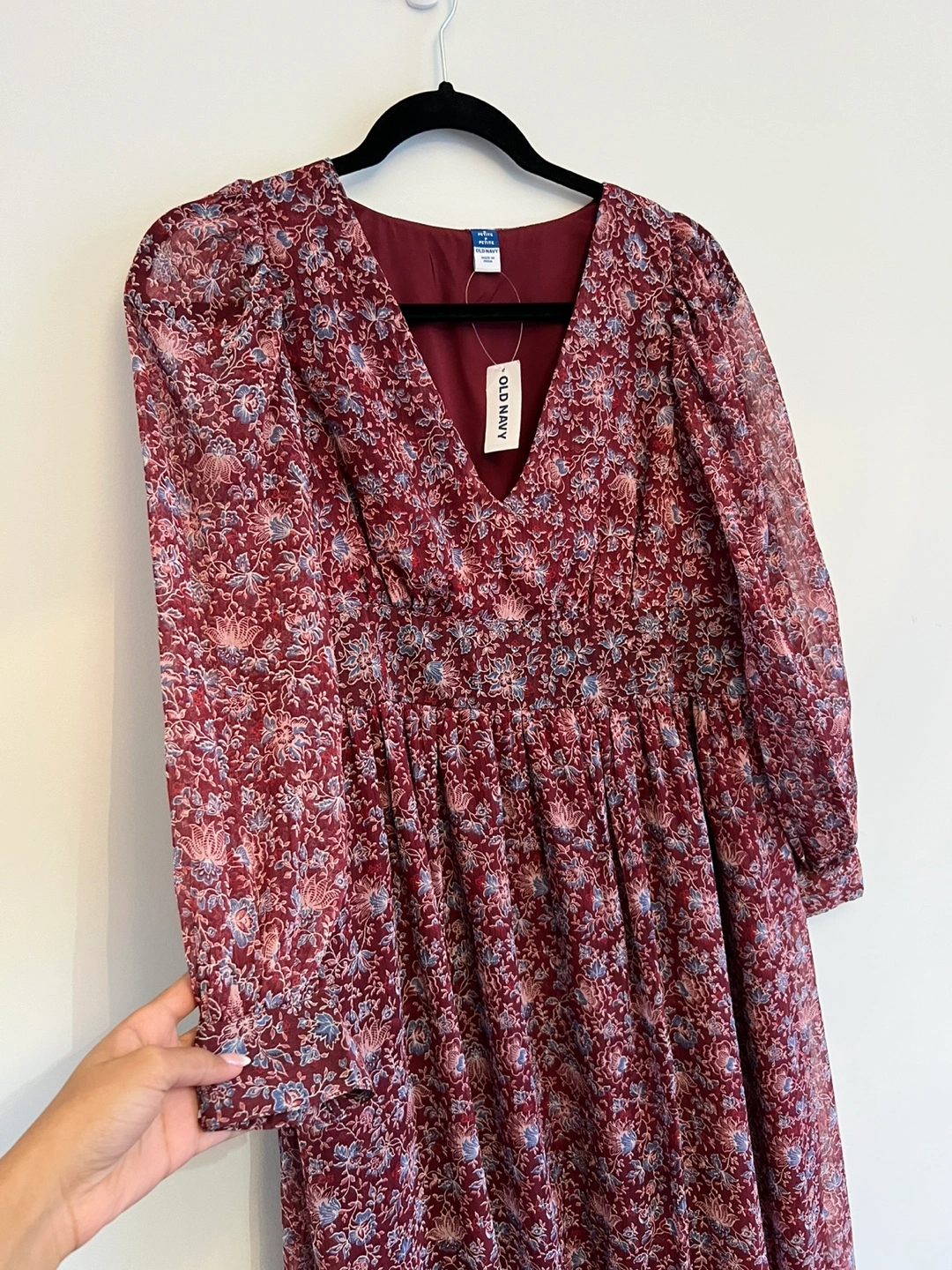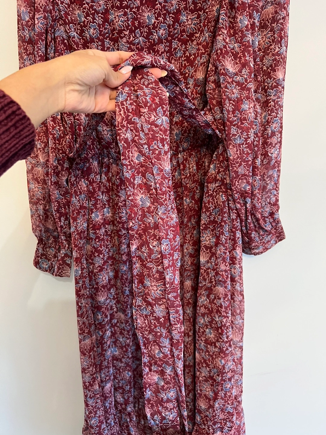 Waist-Defined Chiffon Maxi Dress small petite NWT with belt