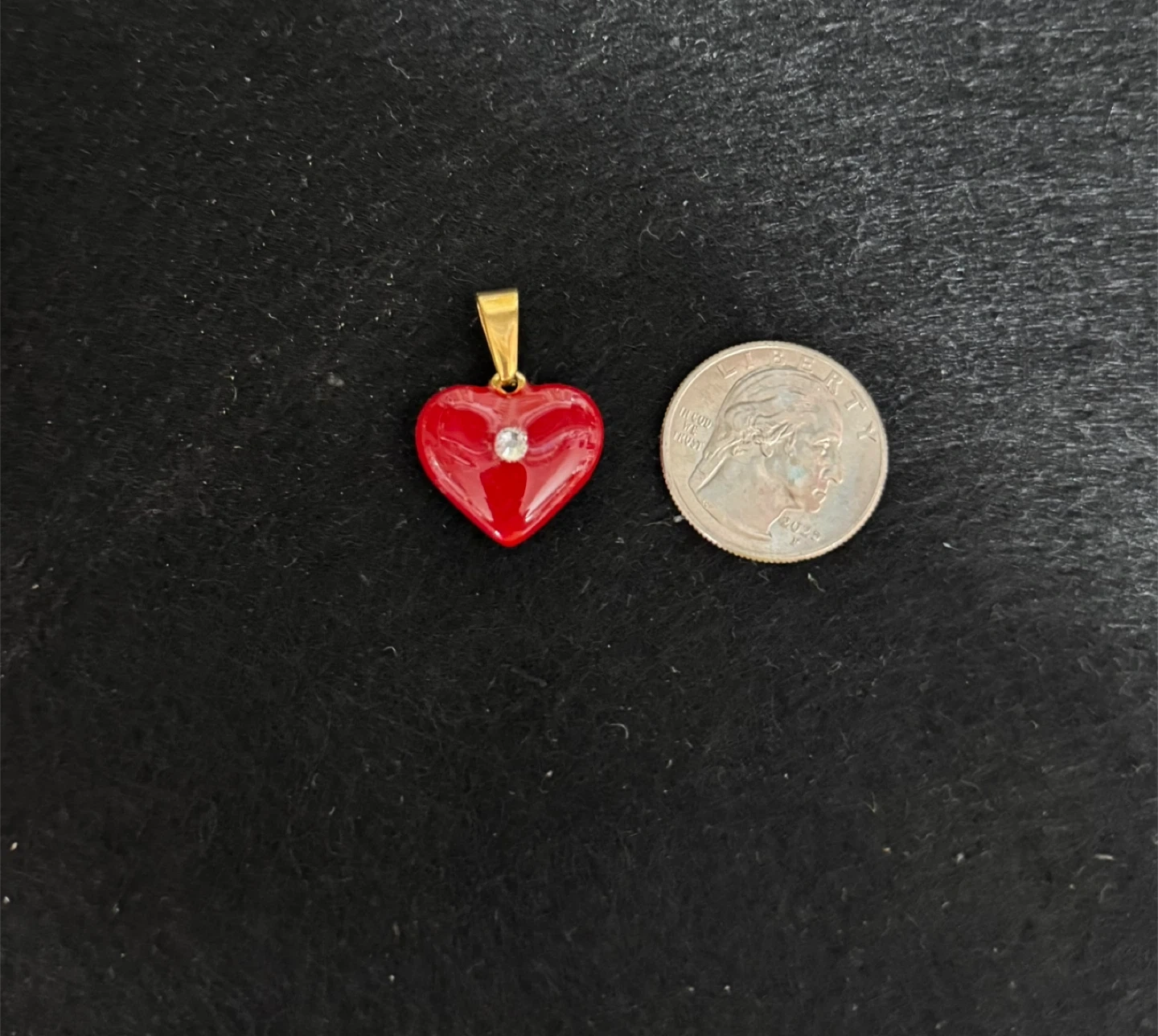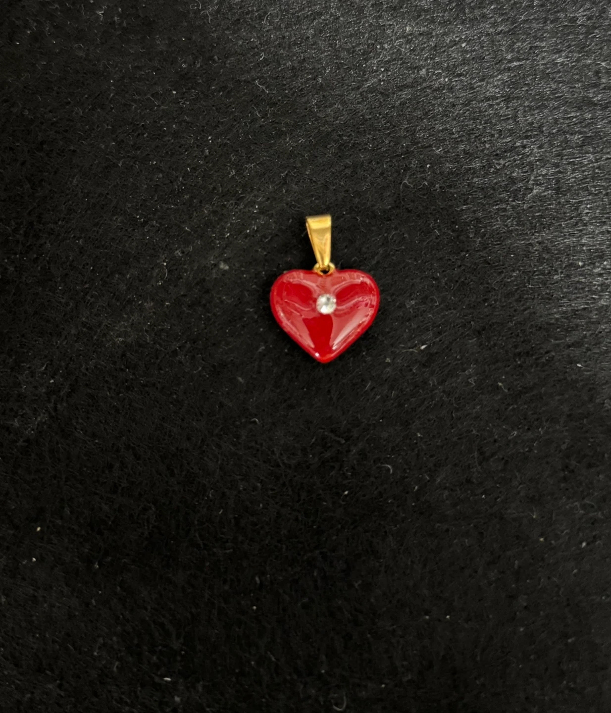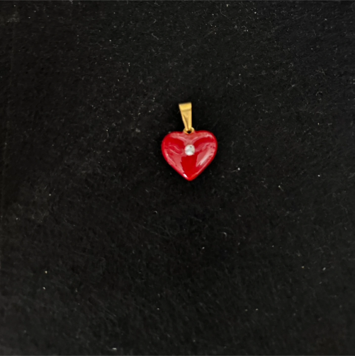 πDeep Red Real Enamel Heart Pendant REVERSIBLE