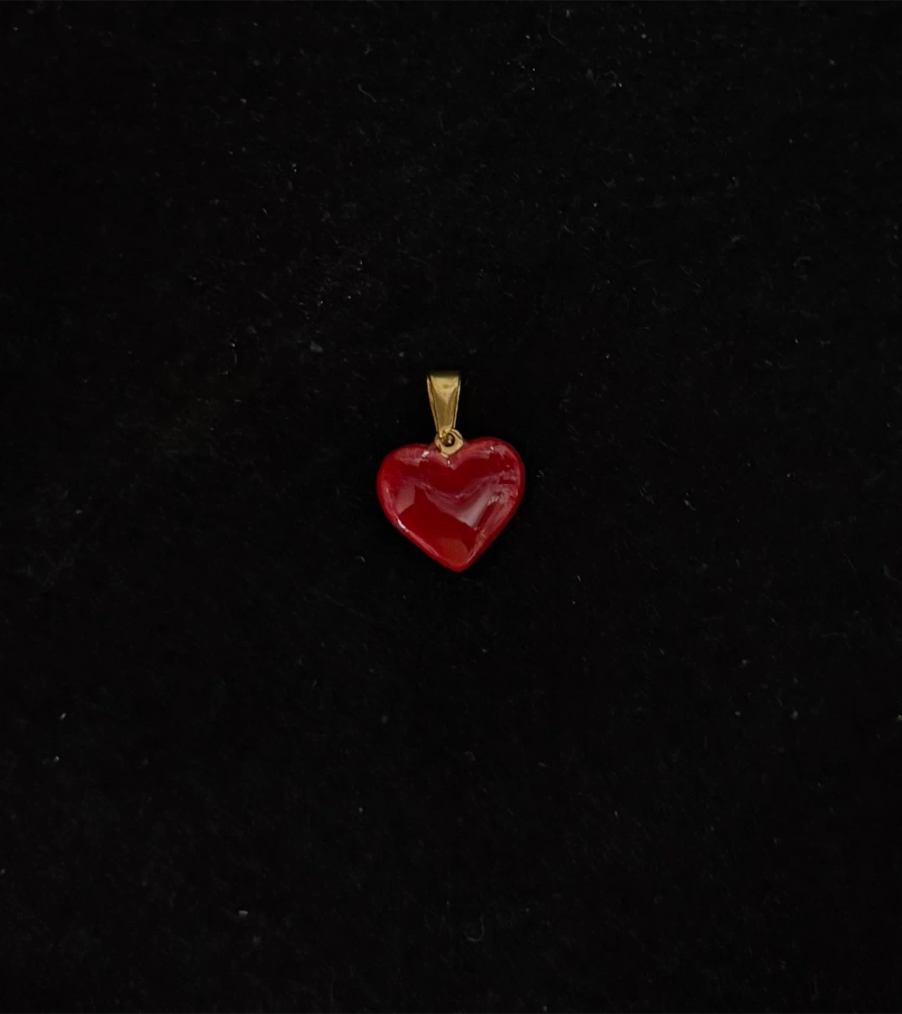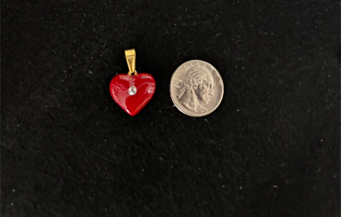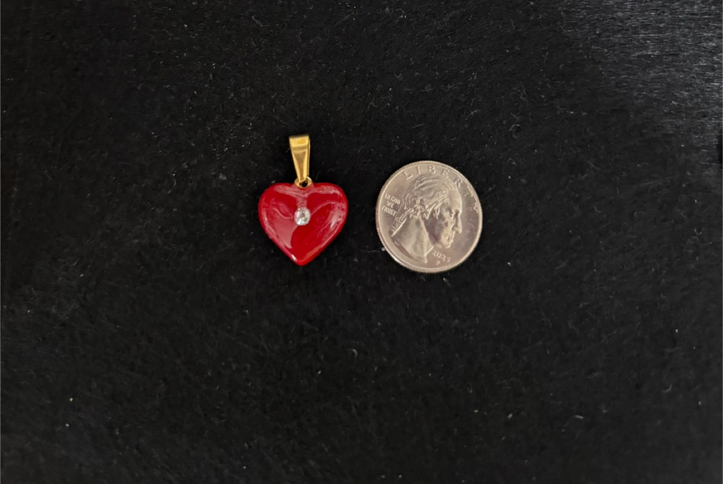 πDeep Red Real Enamel Heart Pendant REVERSIBLE